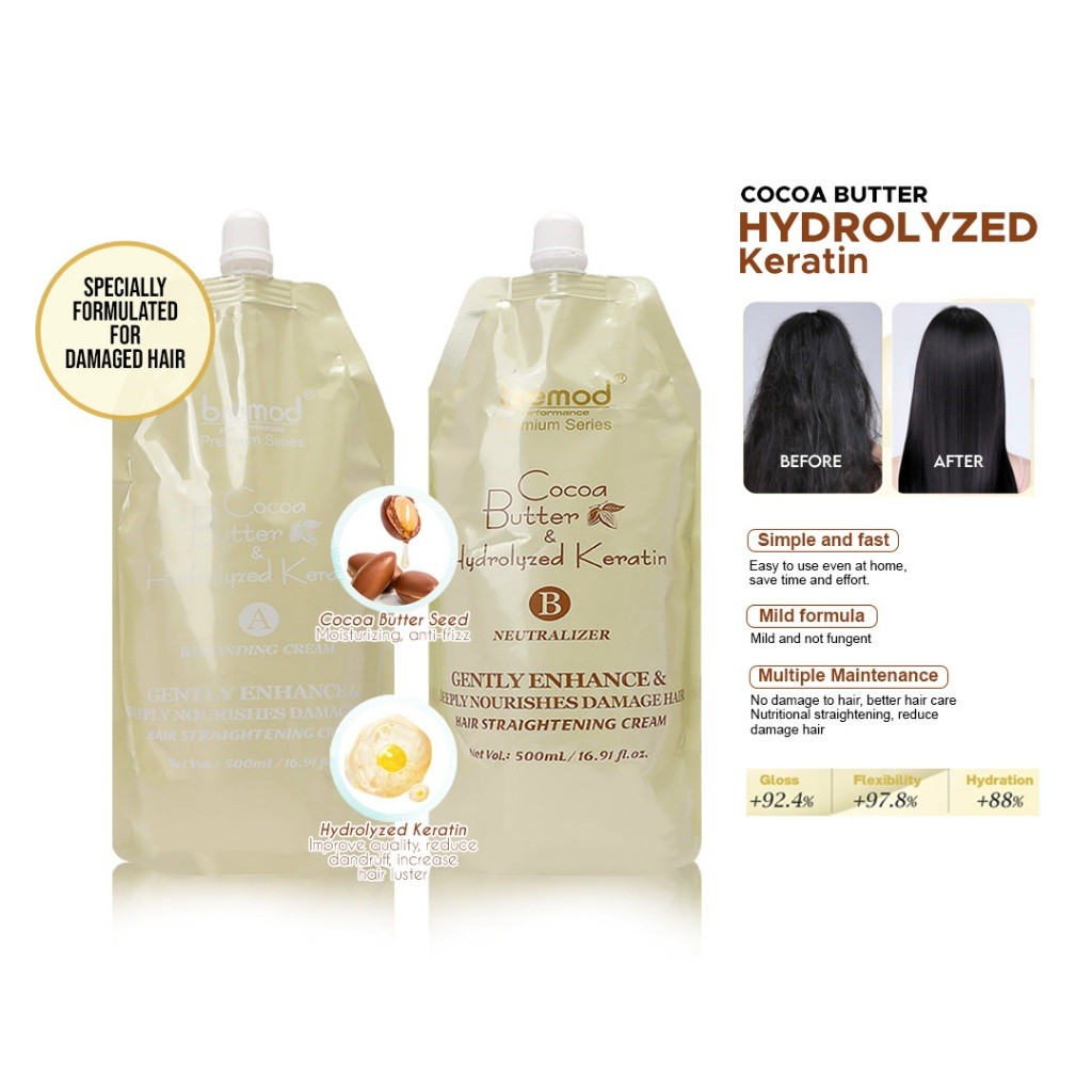 Bremod Premium Keratin Hair Straightening Rebonding Cream Cocoa Butter Hydrolyzed 500ml BR-T016