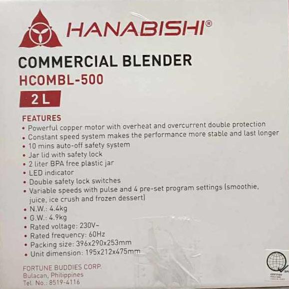 Hanabishi HCOMBL500 Commercial Blender 2 Liters HCOMBL-500 (Houseware Express)