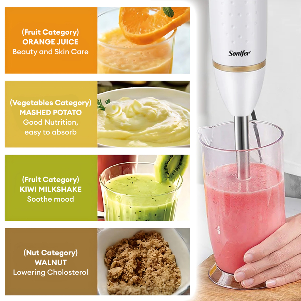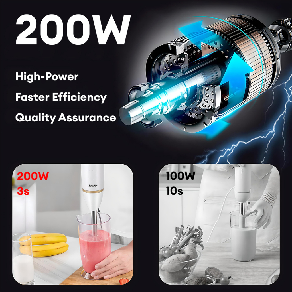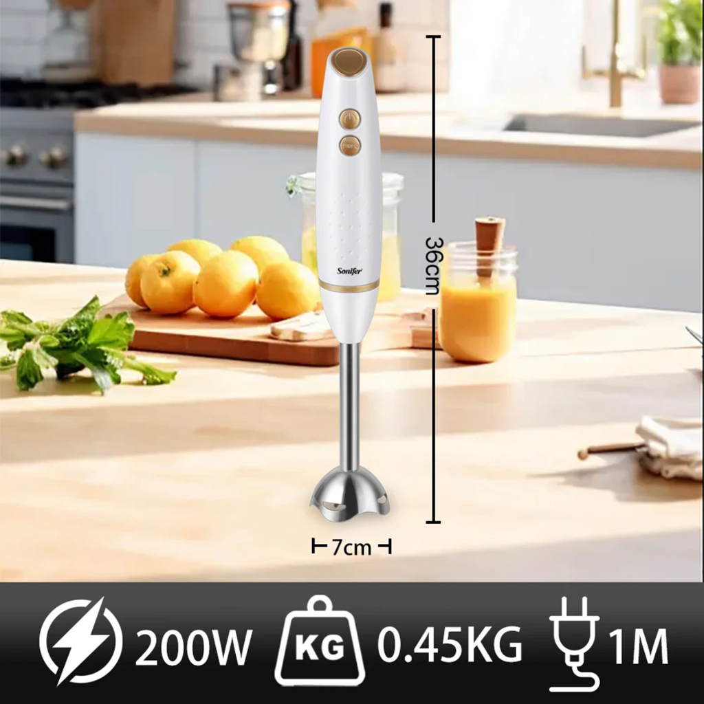 Sonifer Electric Hand Blender 200W 2 Speed Immersion Blender 304 Stainless Steel Blade Ice crushing