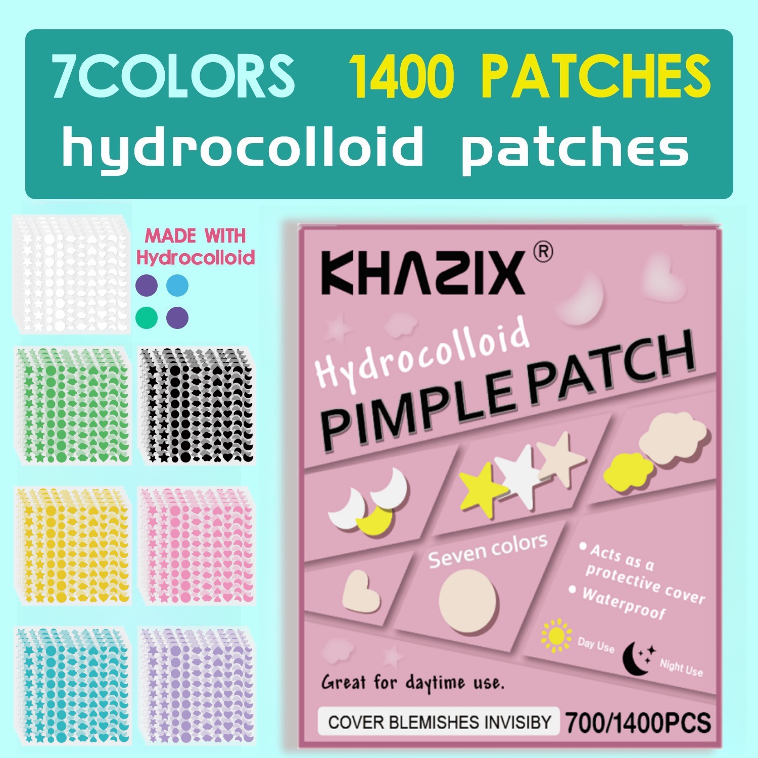 1400PCS Various Shapes of Acne Patches: Stars, Hearts, Clouds, Circles. Different Colors and Sizes. Perfect for Different Occasions. A Must-have Beauty Essential.