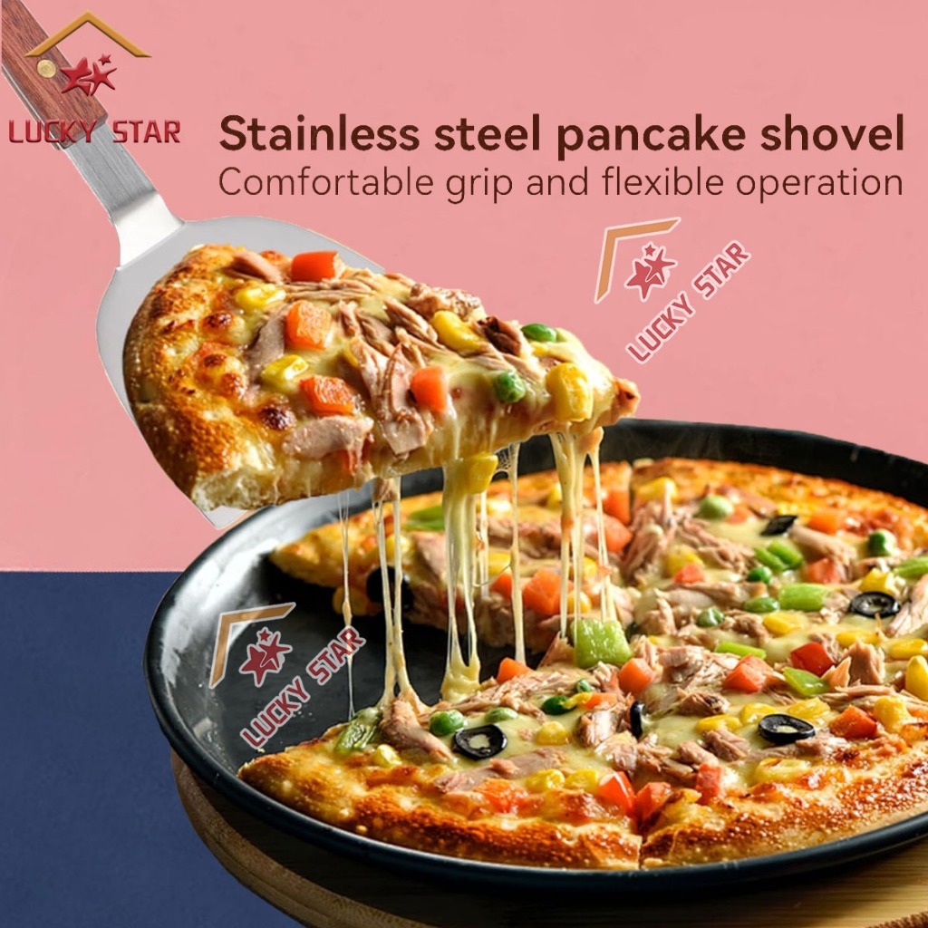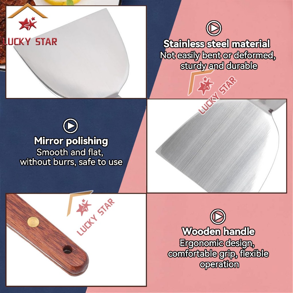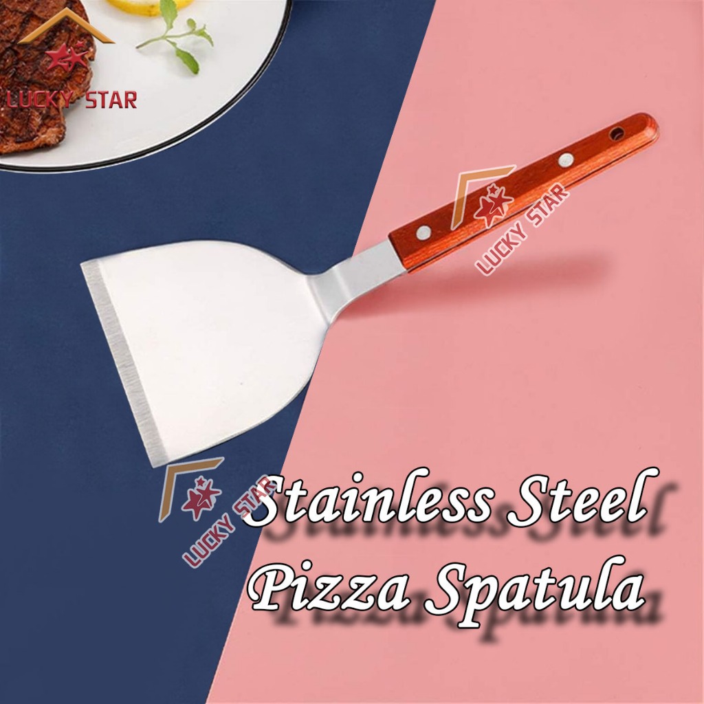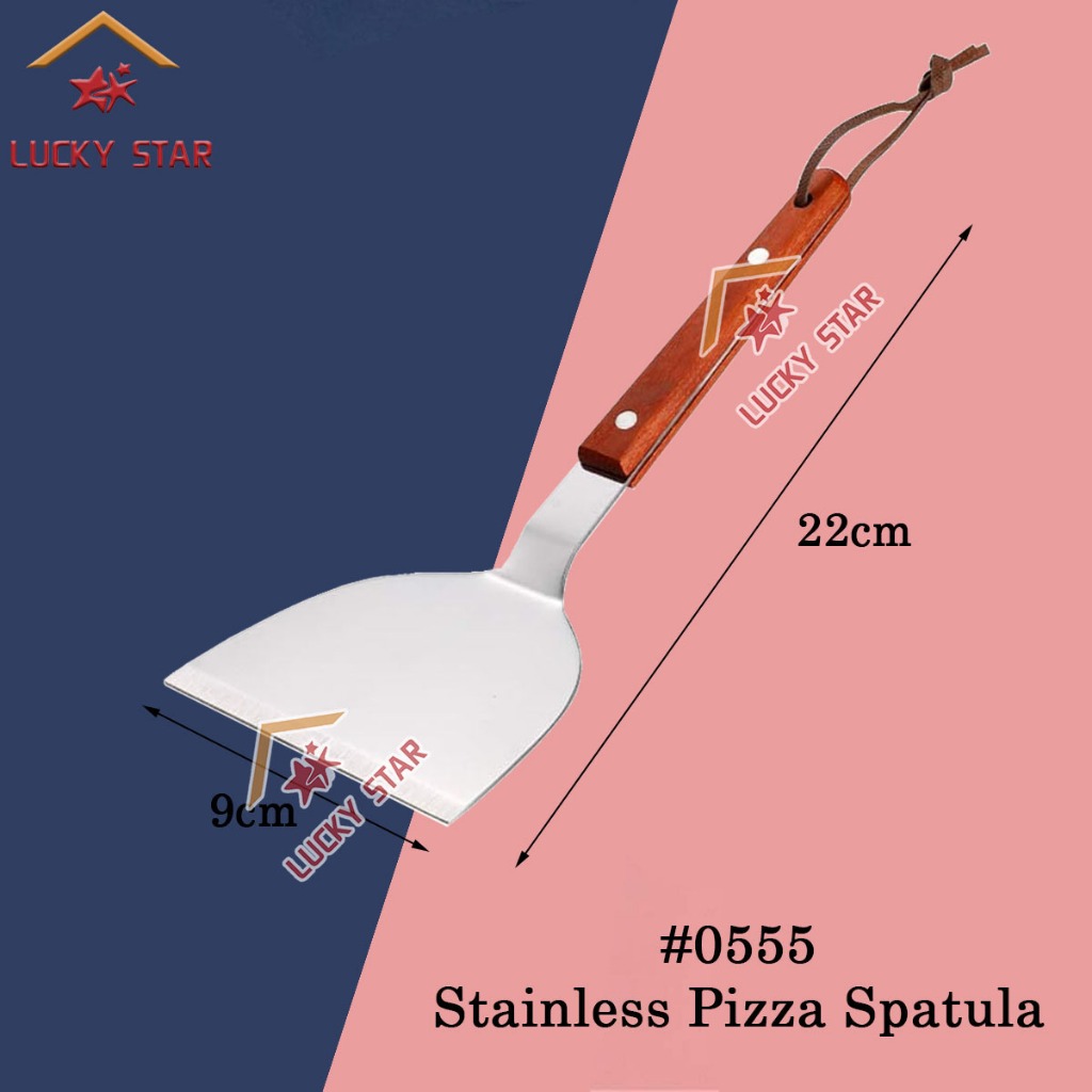 0555# Pizza Spatula Burger Spatula Stainless Steel Cooking Spatula Wooden Handle Shovel Turners