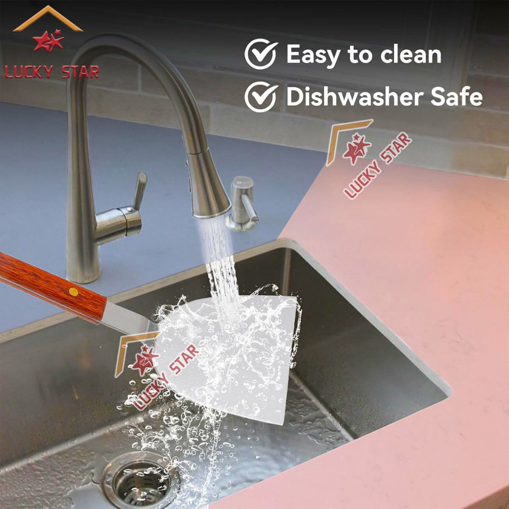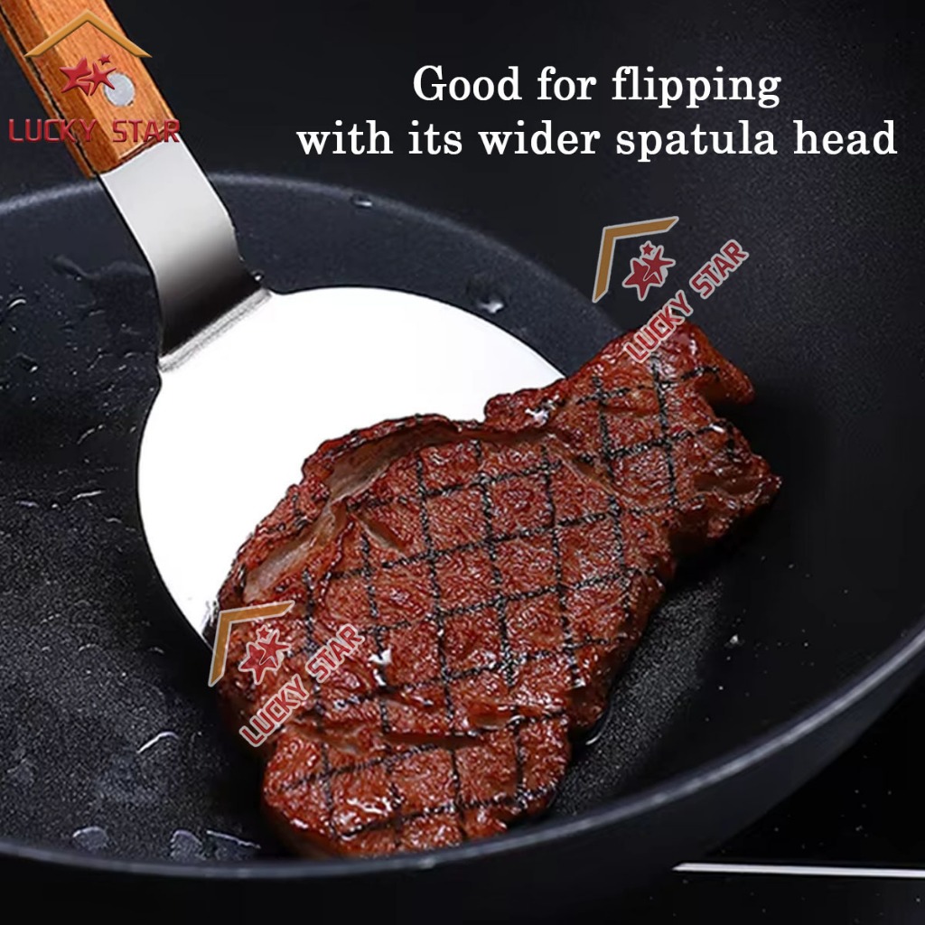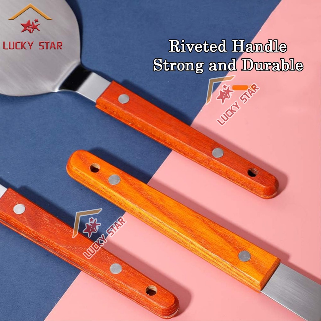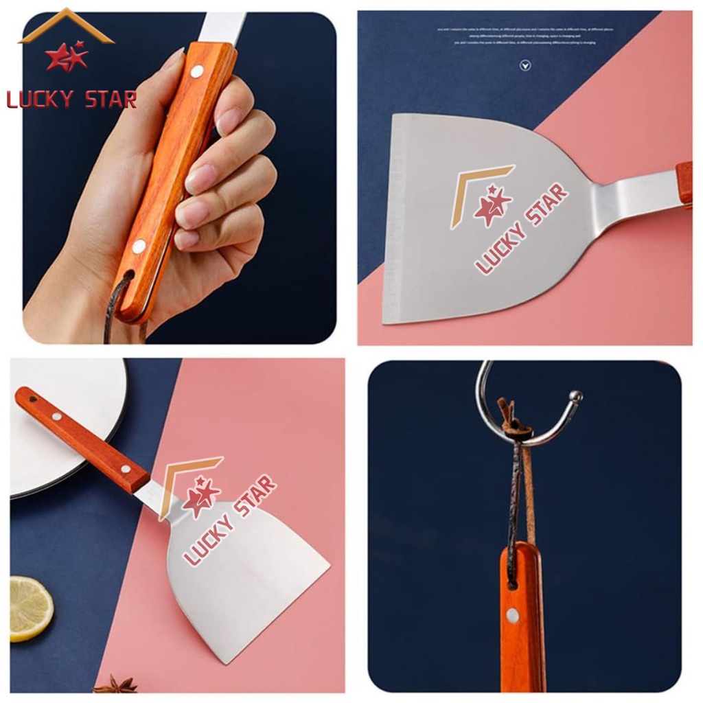 0555# Pizza Spatula Burger Spatula Stainless Steel Cooking Spatula Wooden Handle Shovel Turners