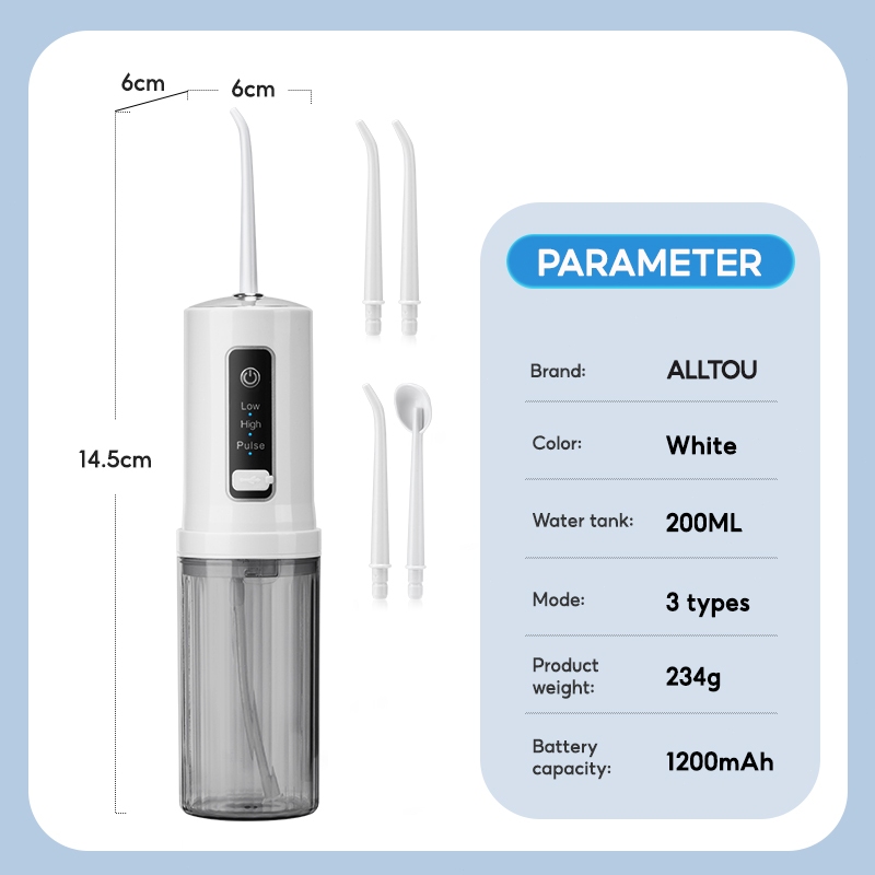 ALLTOU Water Flosser with 4 Nozzles Portable Oral Irrigator 3 Modes Tooth Care Tooth Cleaner