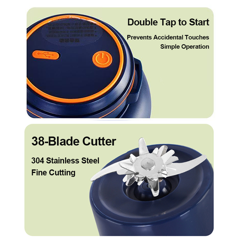 COD Mini Portable Juicer Travel Water Bottle With Straw 38 Blades Crushed-ice Machine Food Blender
