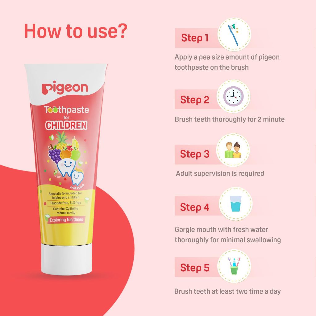 Pigeon Toothpaste Fruit Punch - Anti Cavity, Safe to Swallow, SLS Paraben Free, 0+ months