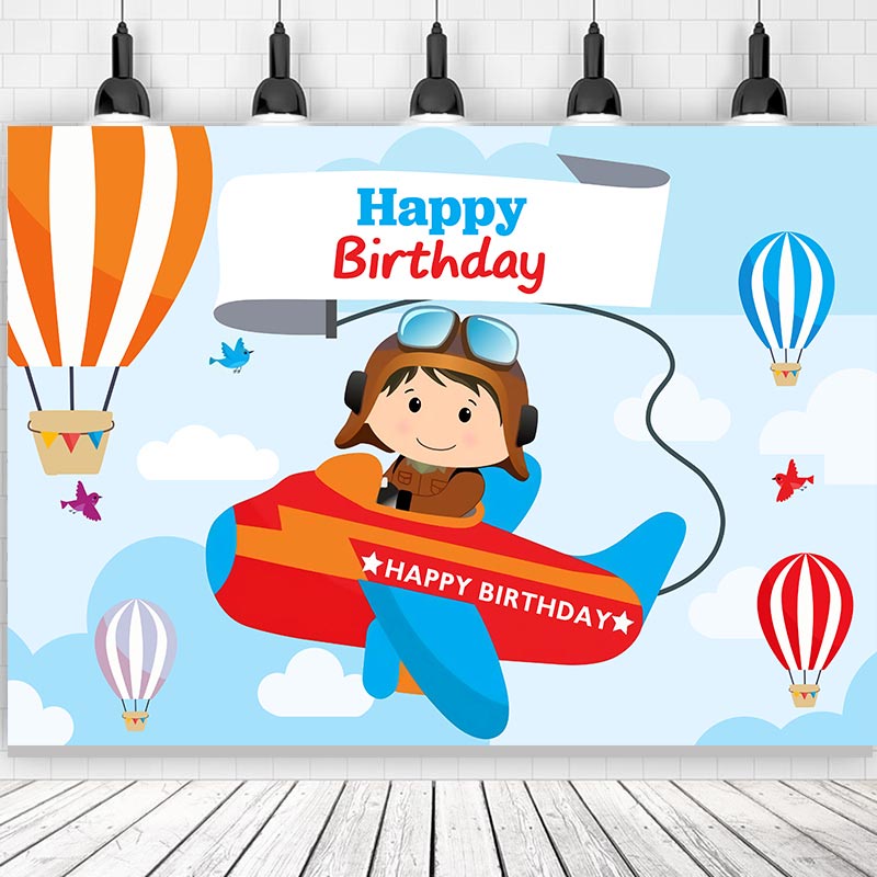 Pilot Aircraft Birthday Backdrop Photography Baby Shower Kids Children Fly Boy Hot Air Balloons Blue Sky Background Party Decor Photos Shoots