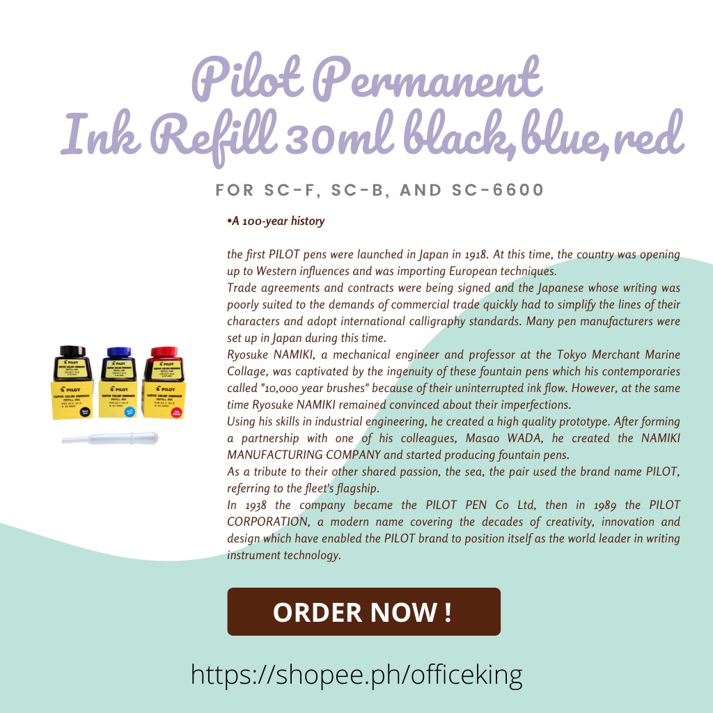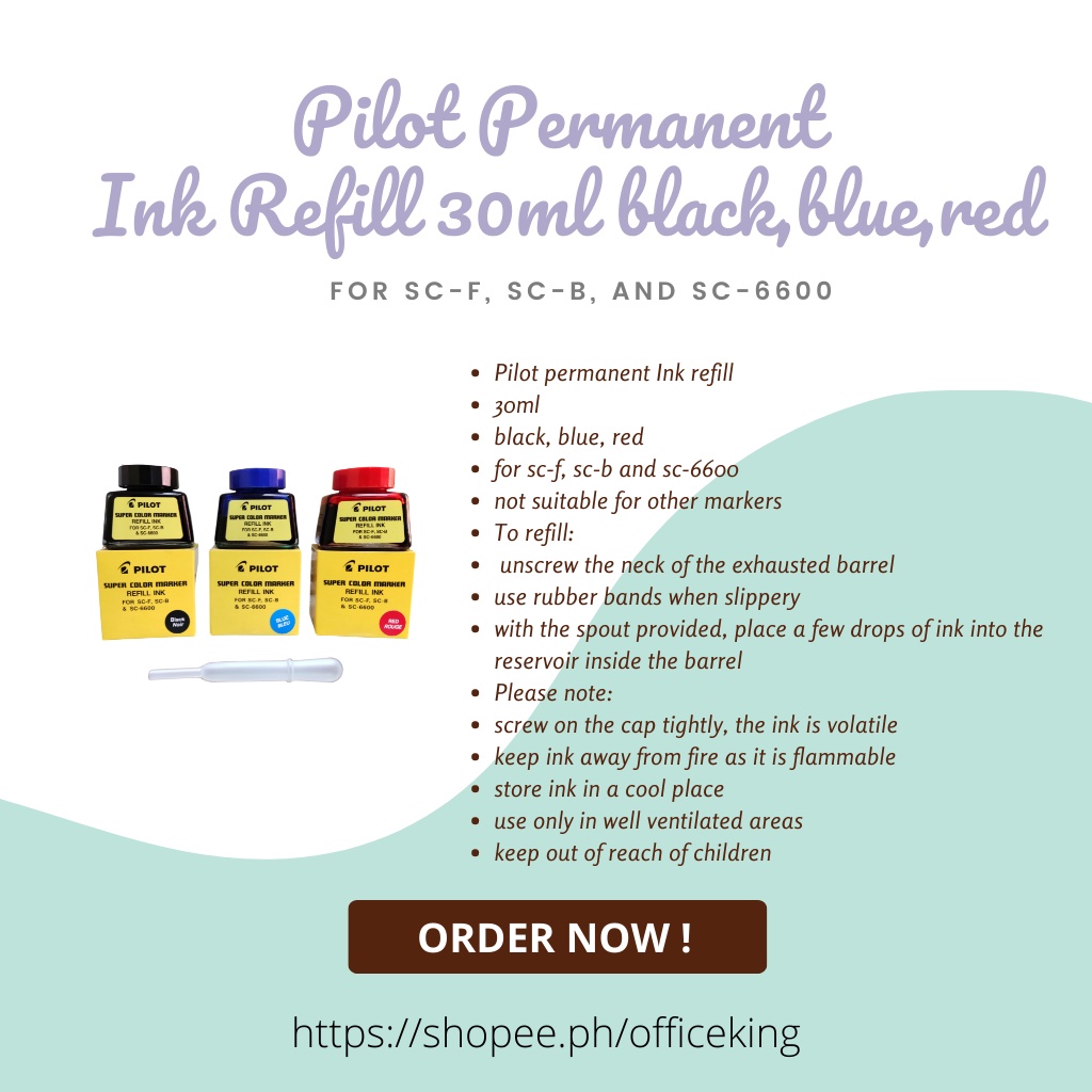 Pilot Permanent Marker ink Refill black, blue, and Red 30ml
