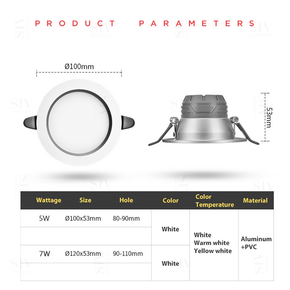 Pin light Tri color LED Downlight Ultra-Thin Ceiling Light Dimmable light Recessed Round Panel Light