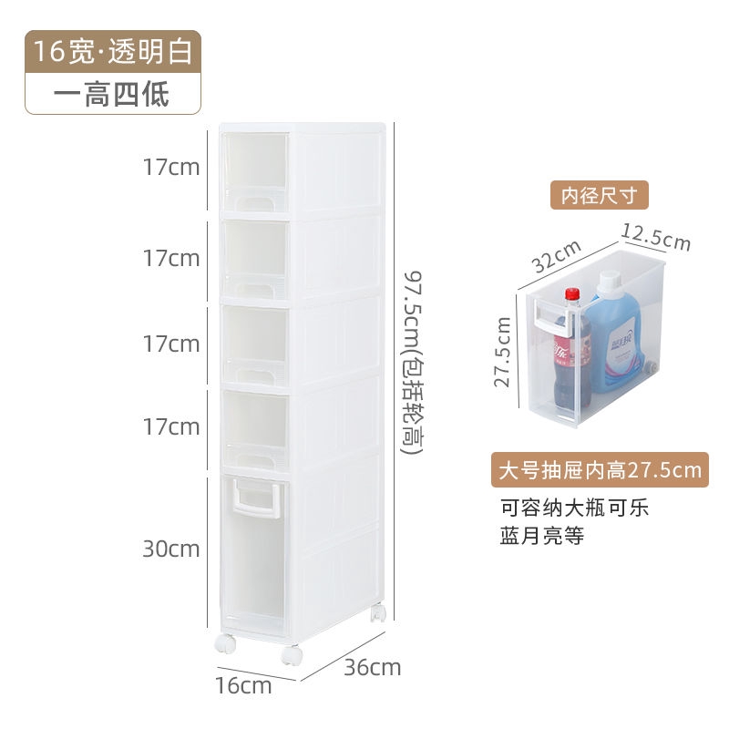 Pinch cabinet storage cabinet drawer plastic transparent storage cabinet kitchen toilet gap storage cabinet