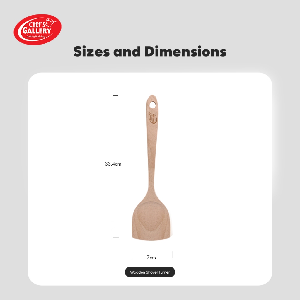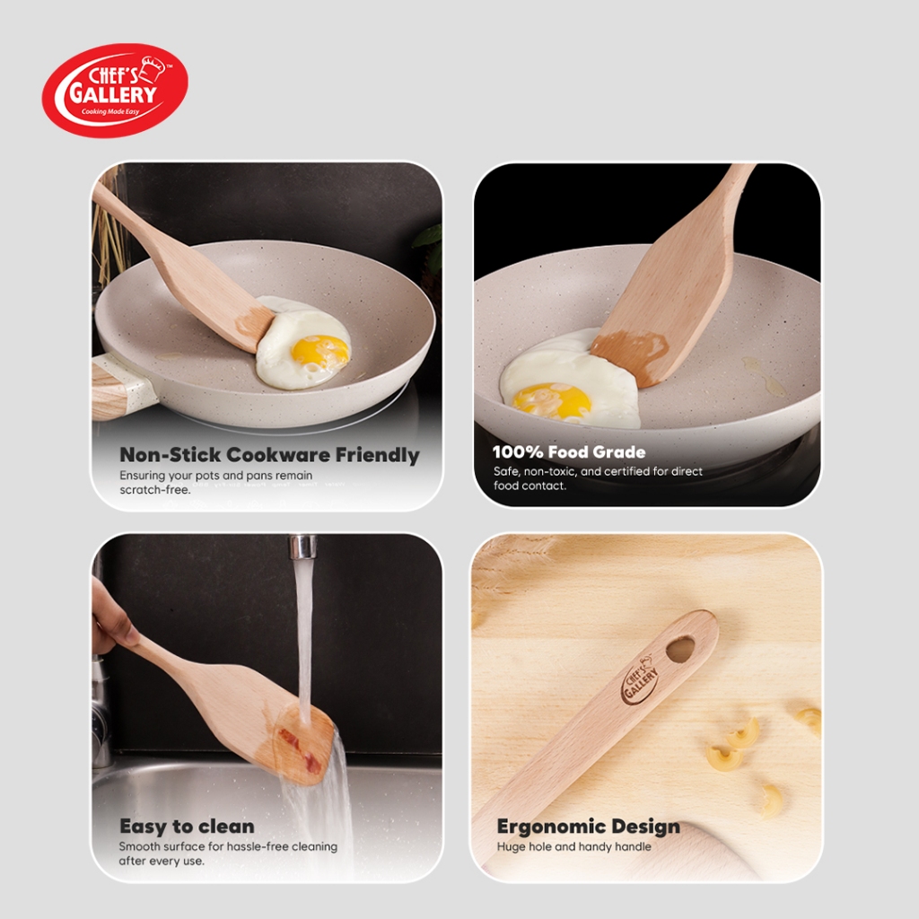 Chef's Gallery Wooden Shovel Turner | 100% Food Grade Material | Safe for Non-stick Cookware CG336