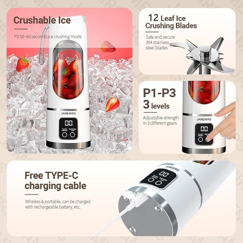 [Free Gifts] [COD] Portable blender 7.4V high power 500ML home outdoor portable blender juicer Milkshake shaker cup