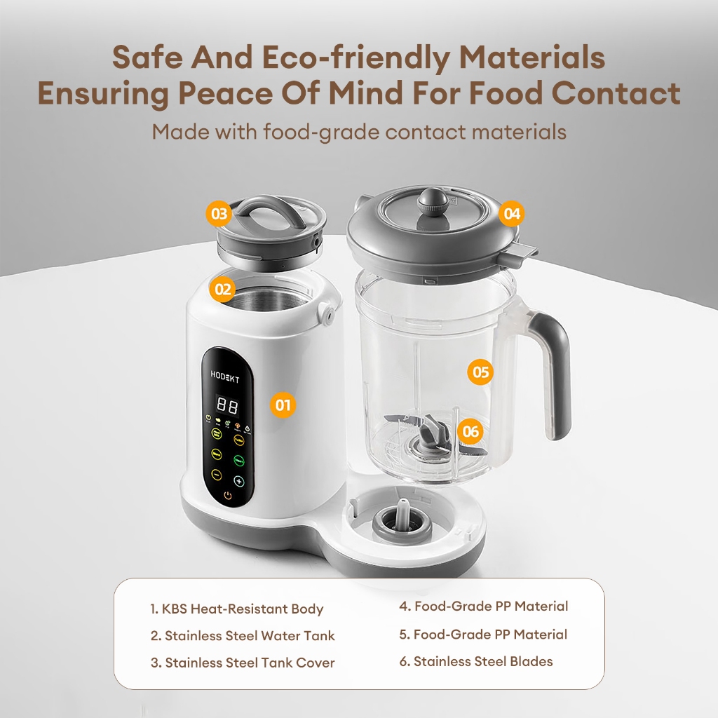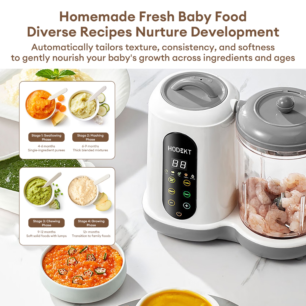 HODEKT Multifunctional Baby Food Processor 10 Minutes Processor Meat Grinder Smasher Steamer