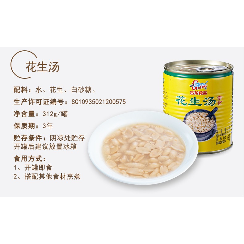 Gulong peanut soup vegetarian specialty canned peanut kernel in syrup 312g