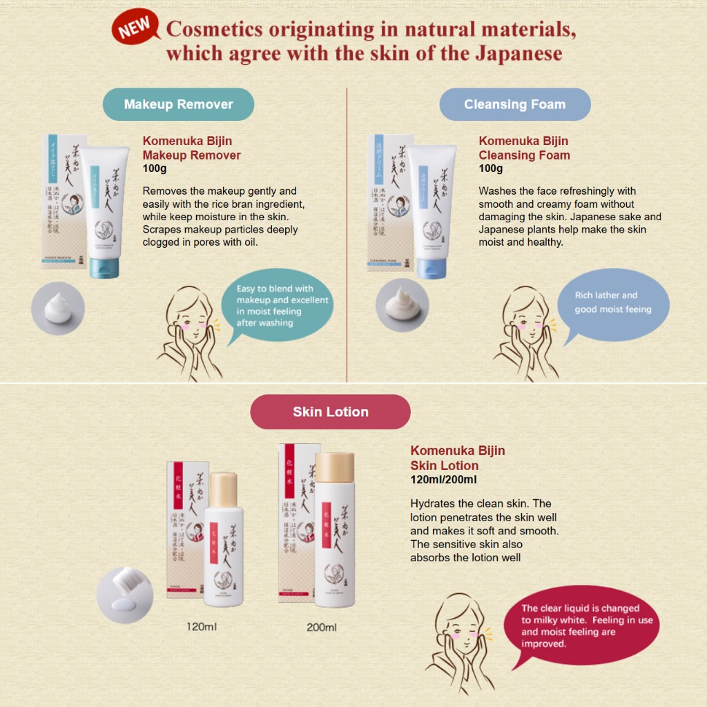Nihonsakari Rice Bran Beauty Lotion / Milky / Cream/ Cleansing Foam/ Makeup Remover Made In Japan