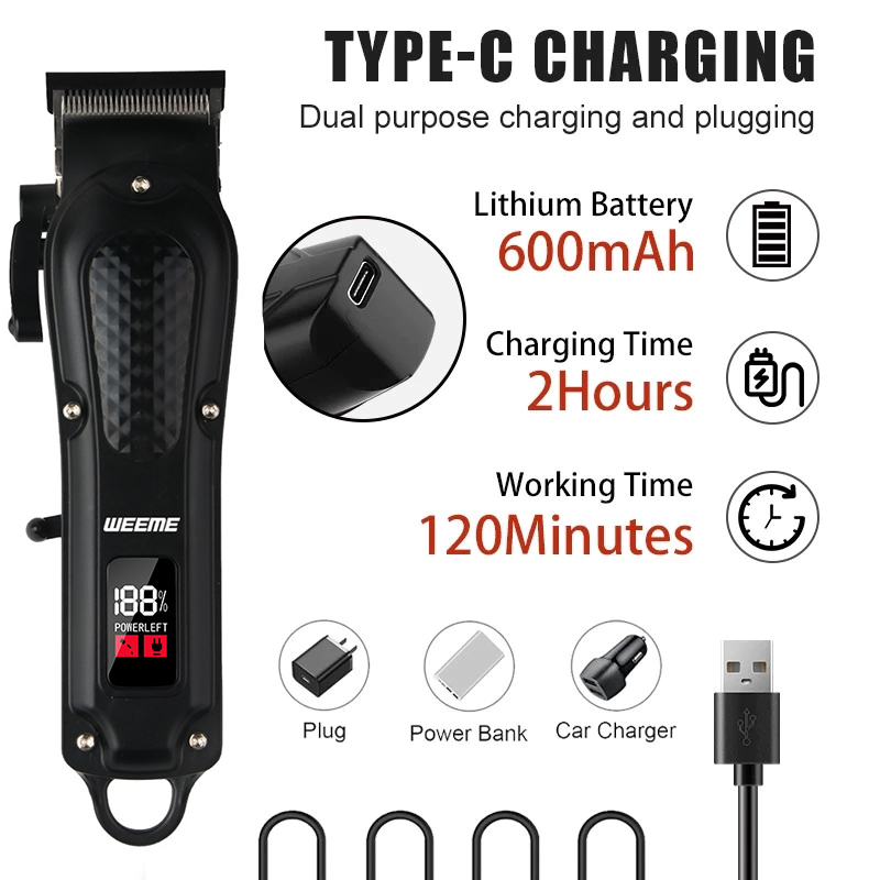 Hair Clipper Men's Professional Cordless Trimmer Hair Cutting Rechargeable Electric Shaver