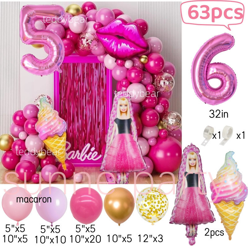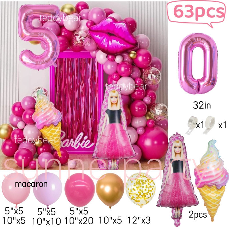 Pink Barbie Balloons Party Decorations Chain Set 32inch Pink Number Balloon for Birthday Princess Theme Baby Shower