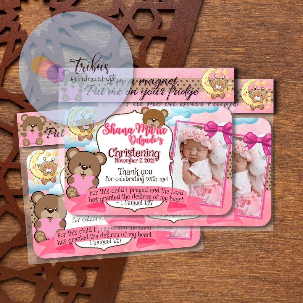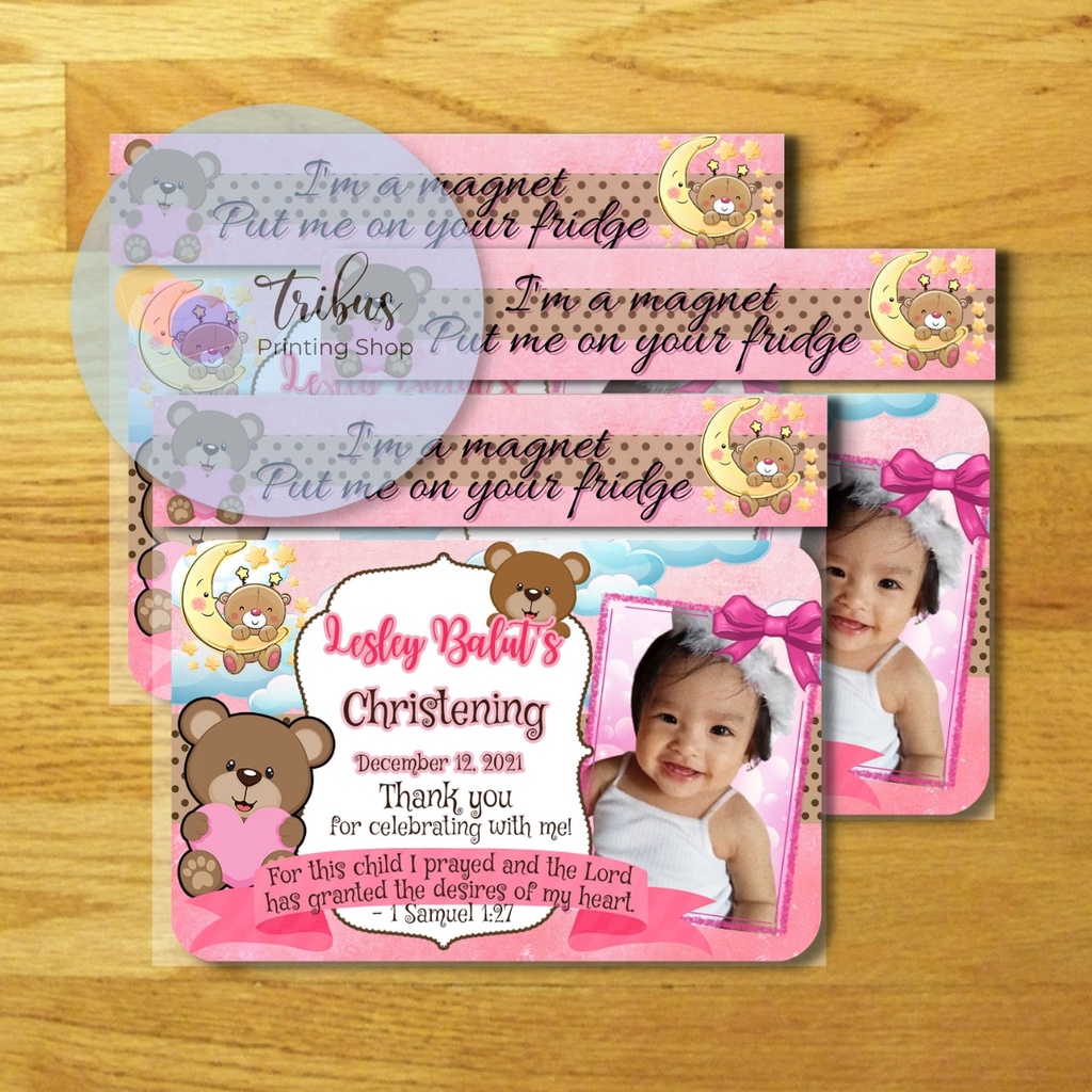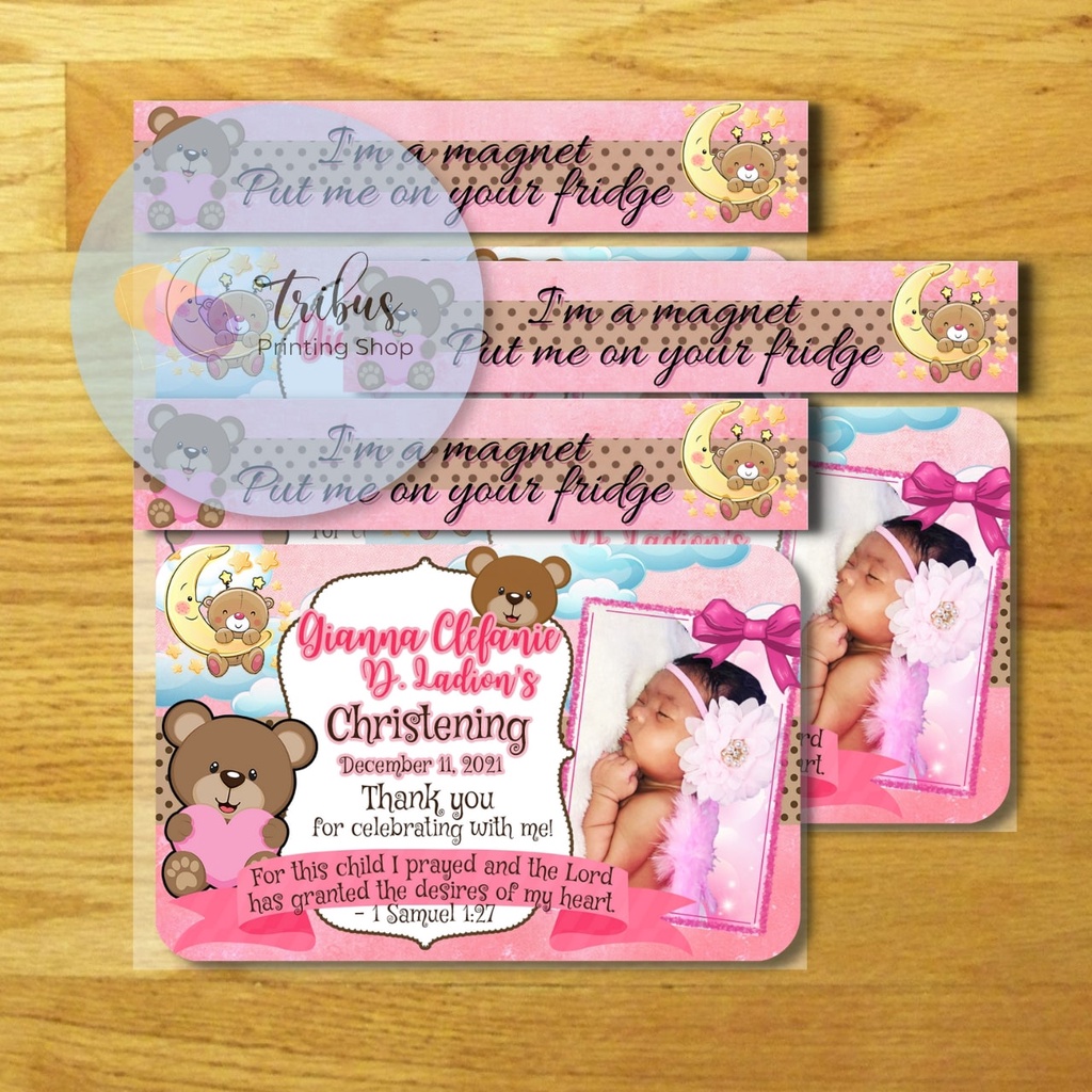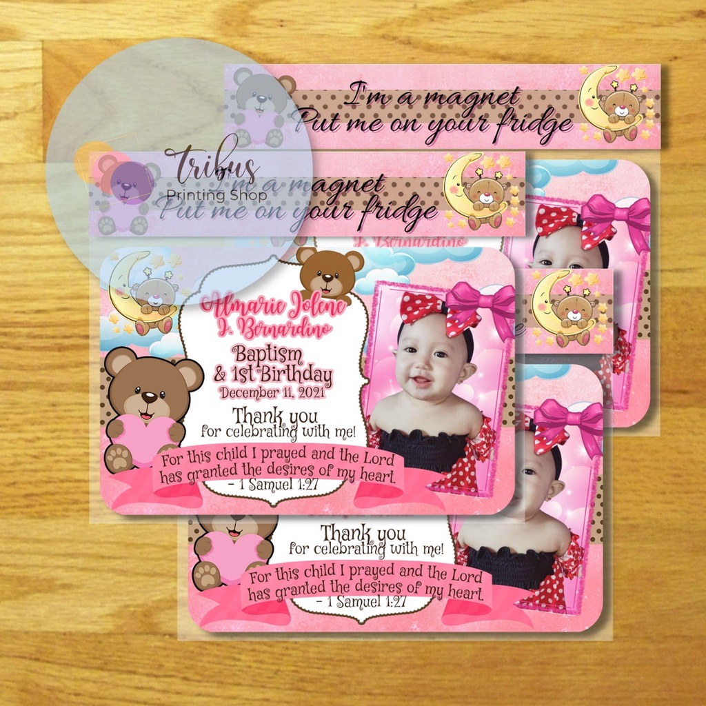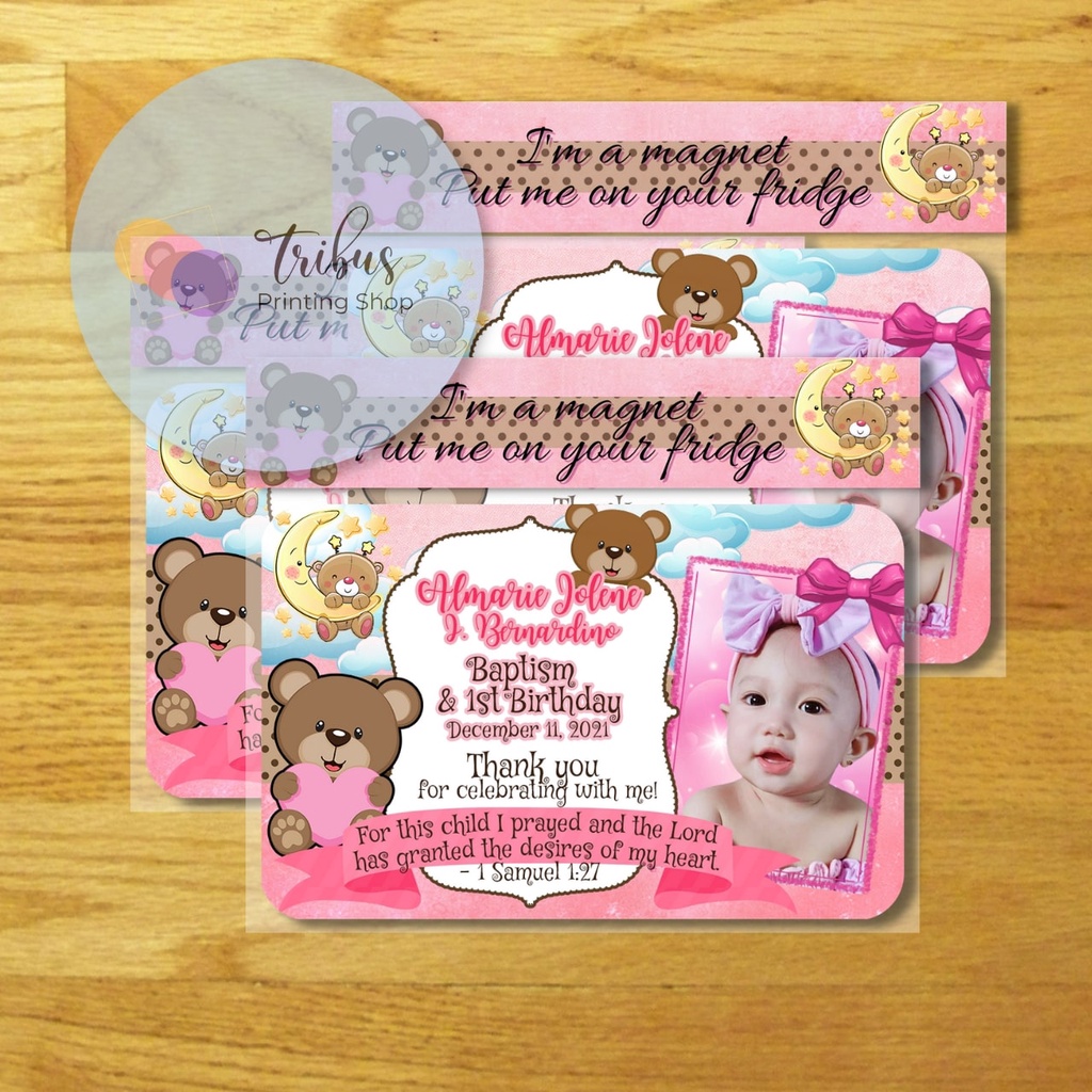 Pink Bear Theme Ref Magnet for Girls (Baptismal, Christening, Dedication Souvenir/Giveaway)
