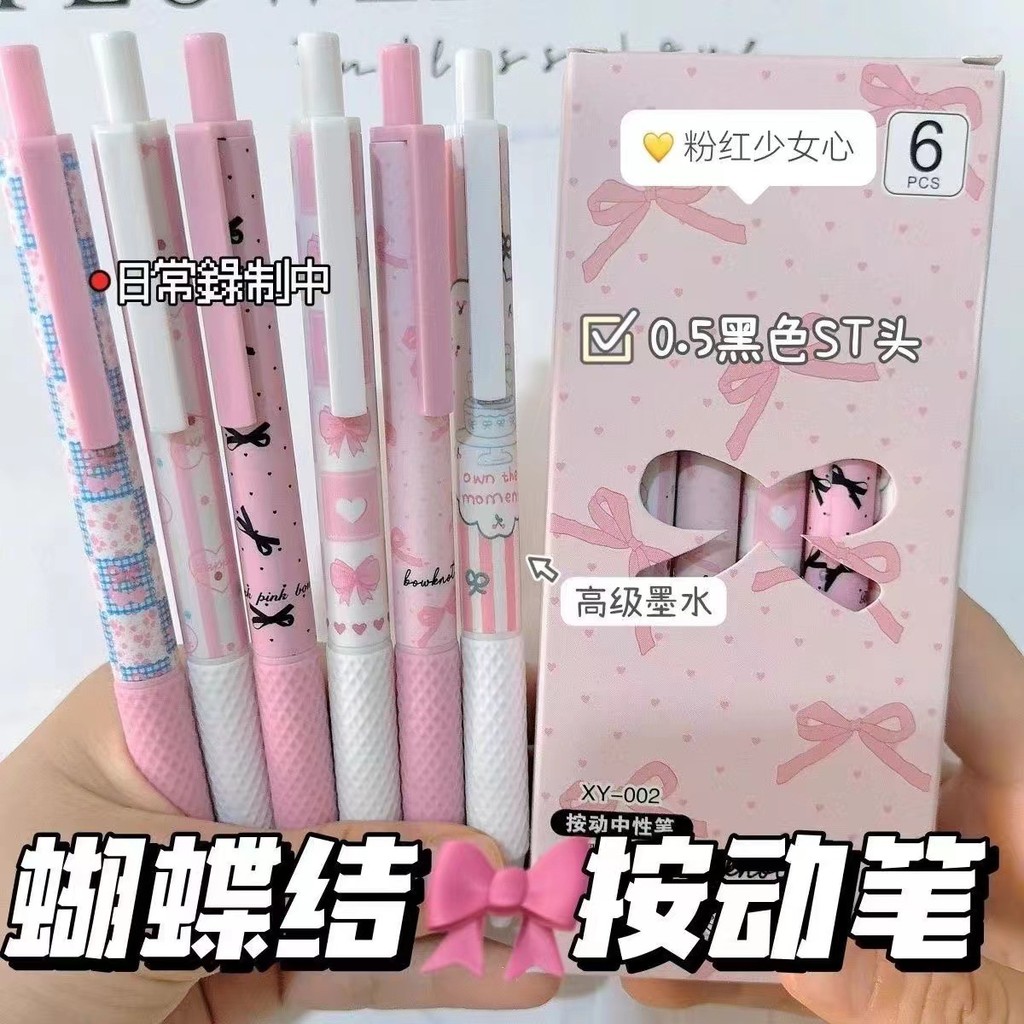 Pink Butterfly Pressing Pen Black Quick-Drying Brush Pen Gel Pen Creative Stationery Gift Prizes Students' Supplies Office Supplies
