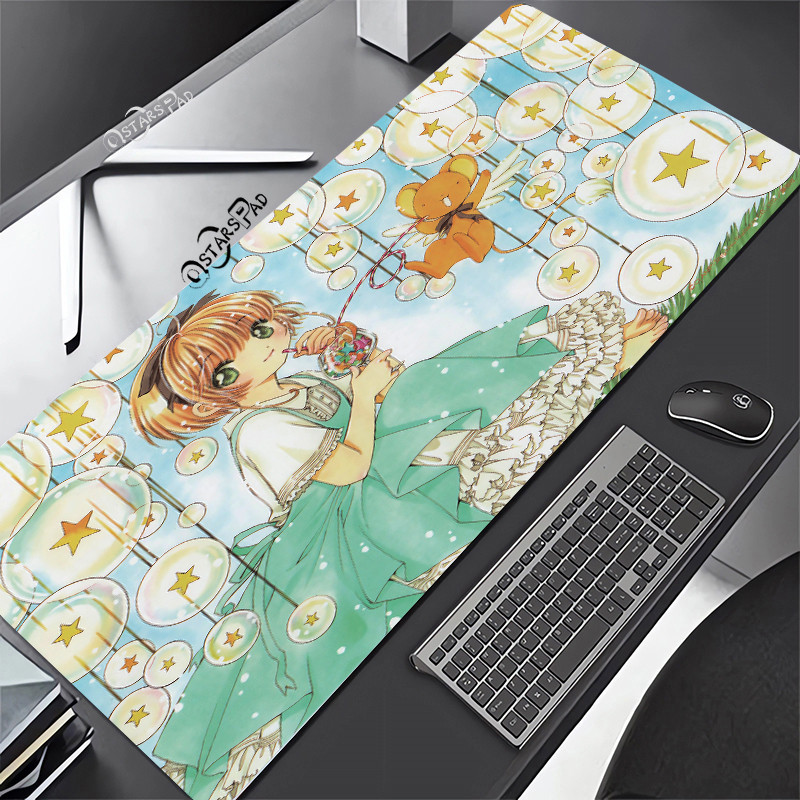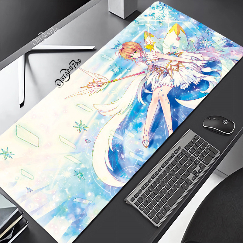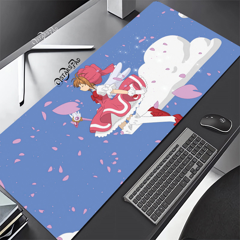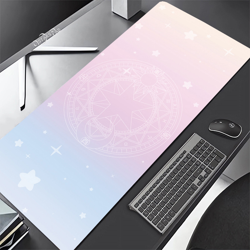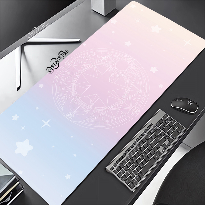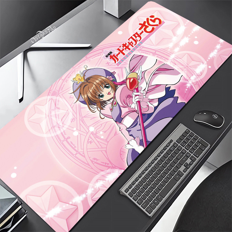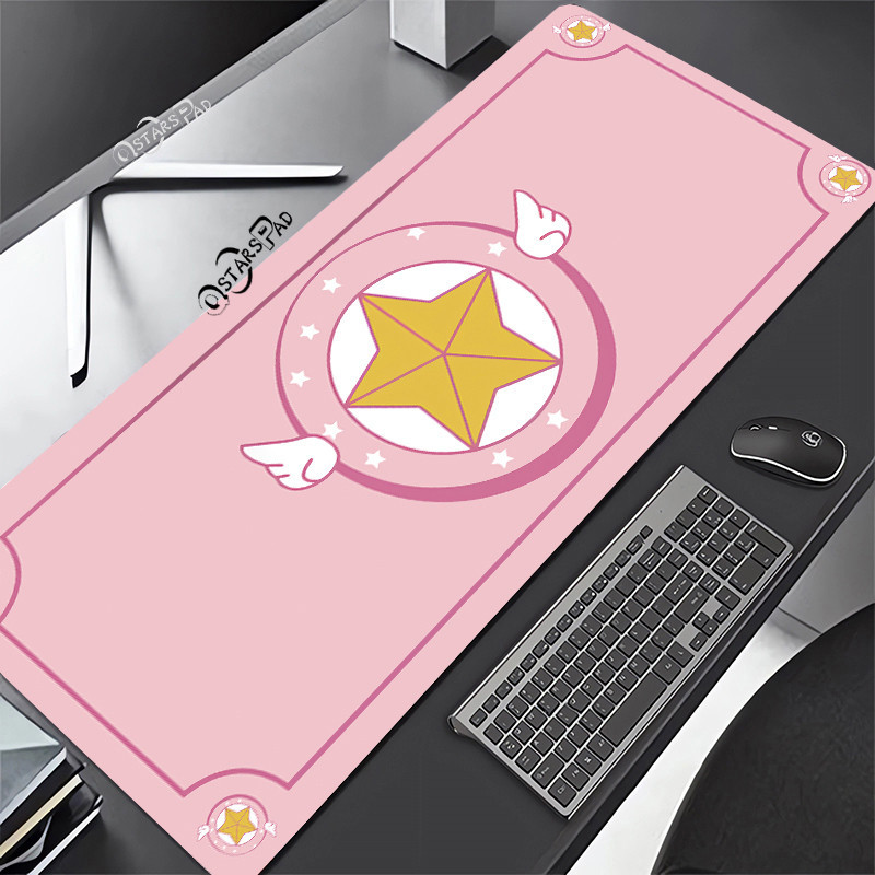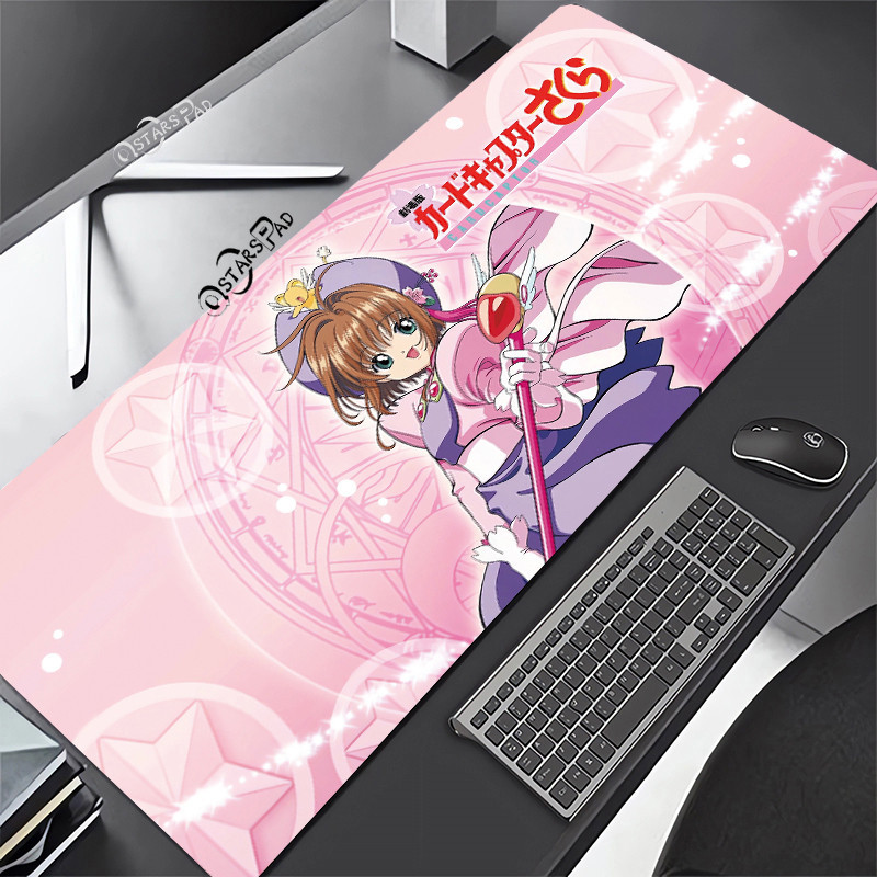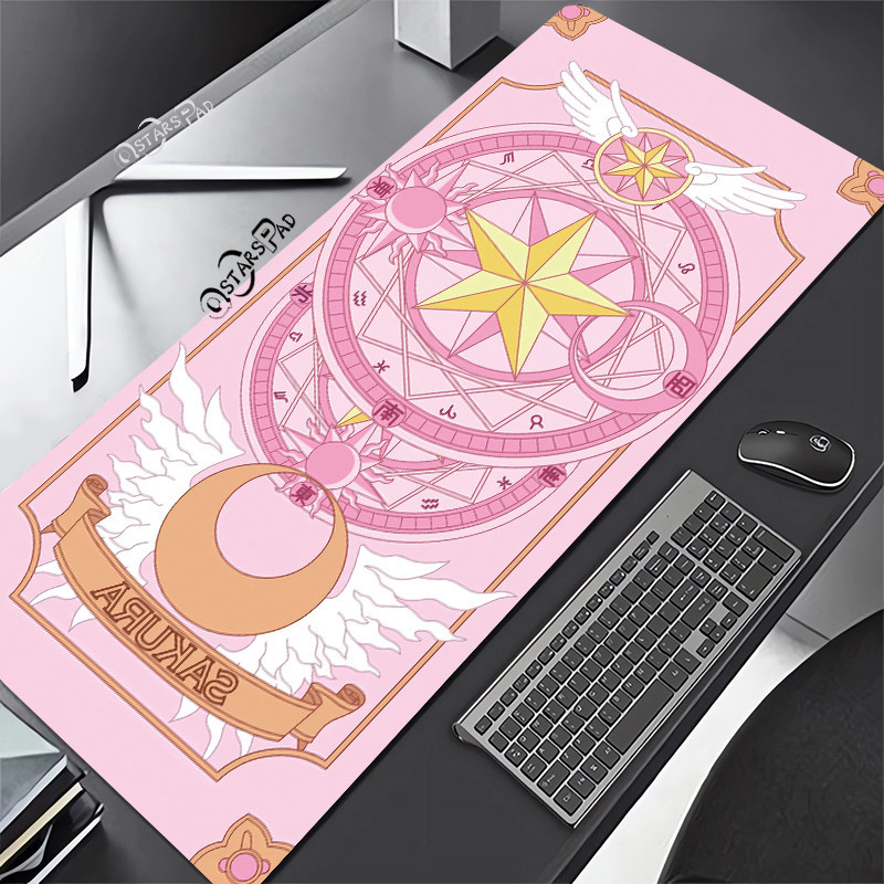 Pink Cardcaptor Sakura Large Deskmat Magic Wand 90*40 Rubber Playmat Cartoon Gaming Laptop Keyboard Mat Anti-slip