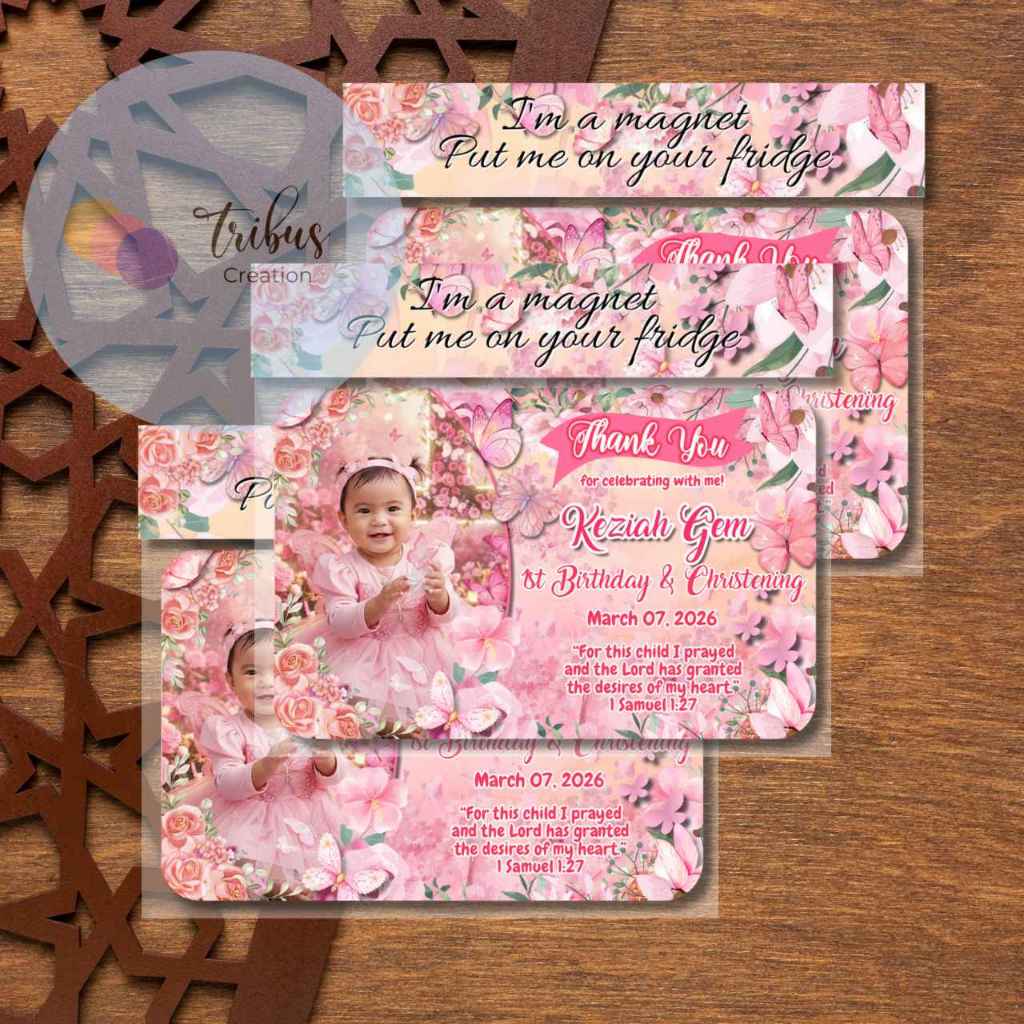 Pink Florals and Butterflies Theme Ref Magnet Souvenir (Glittery)