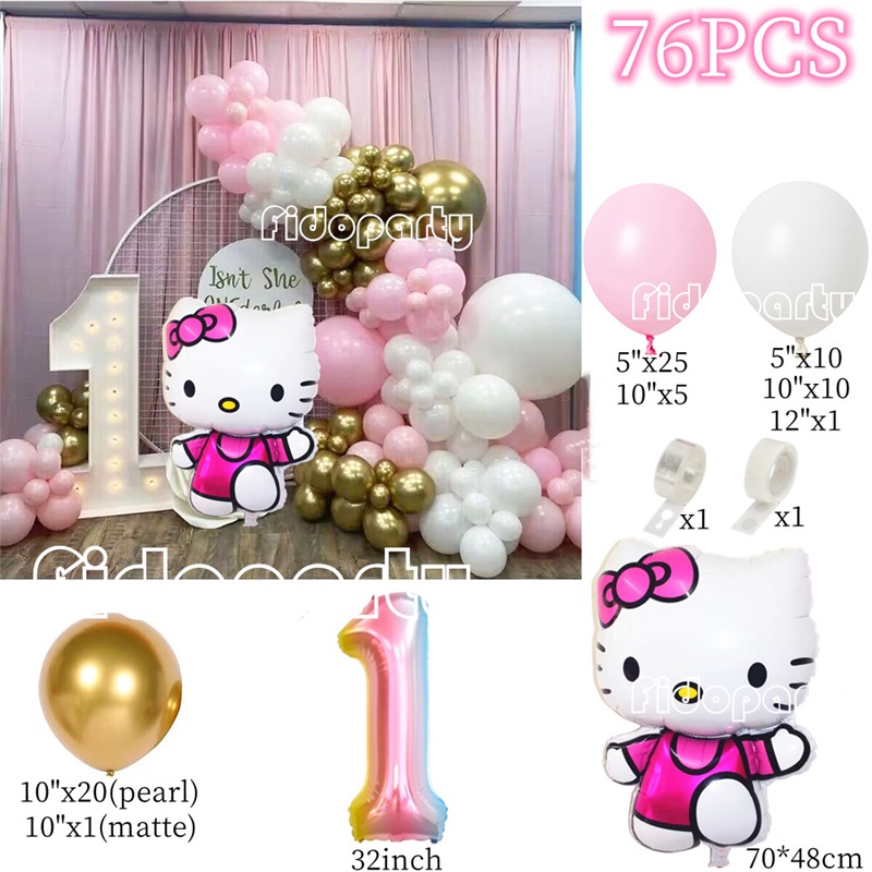 Pink Hello Kitty Balloon Arch Kit White Metallic Gold Balloon Garland Baby Shower Girl Birthday Party Wedding Decoration