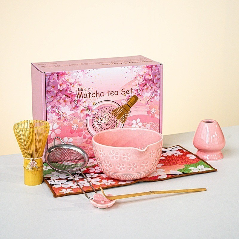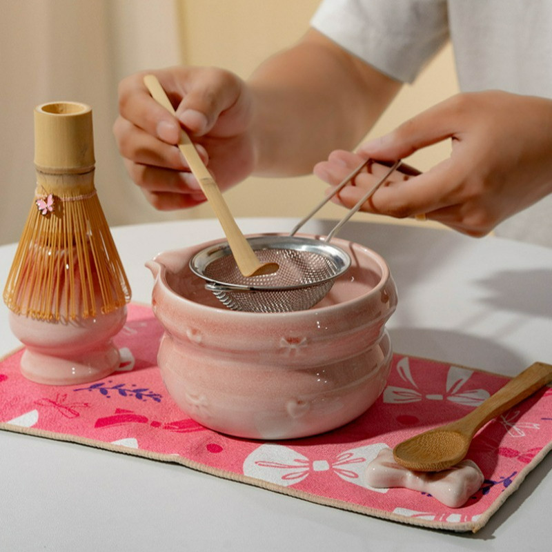Pink Matcha Set 4/7 Pieces Japanese Matcha Set Matcha Bowl Set Matcha Tea Set Cute Matcha Bowl with Spout