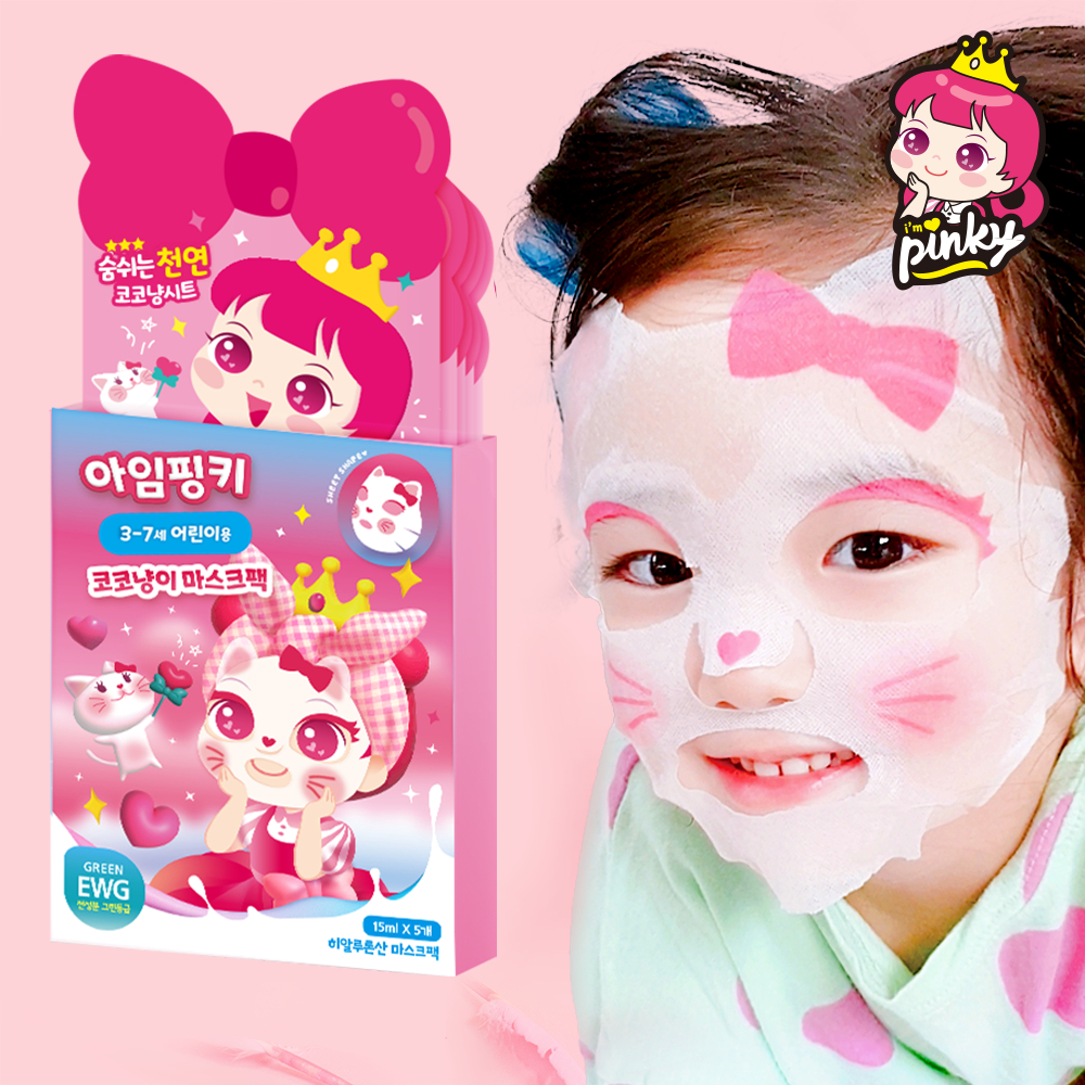 I'm Pinky Kids Moisture Kitten Sheet Mask 5-Pack Korean Kids Skincare Facial Mask