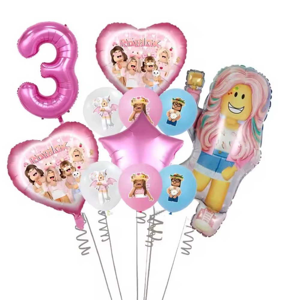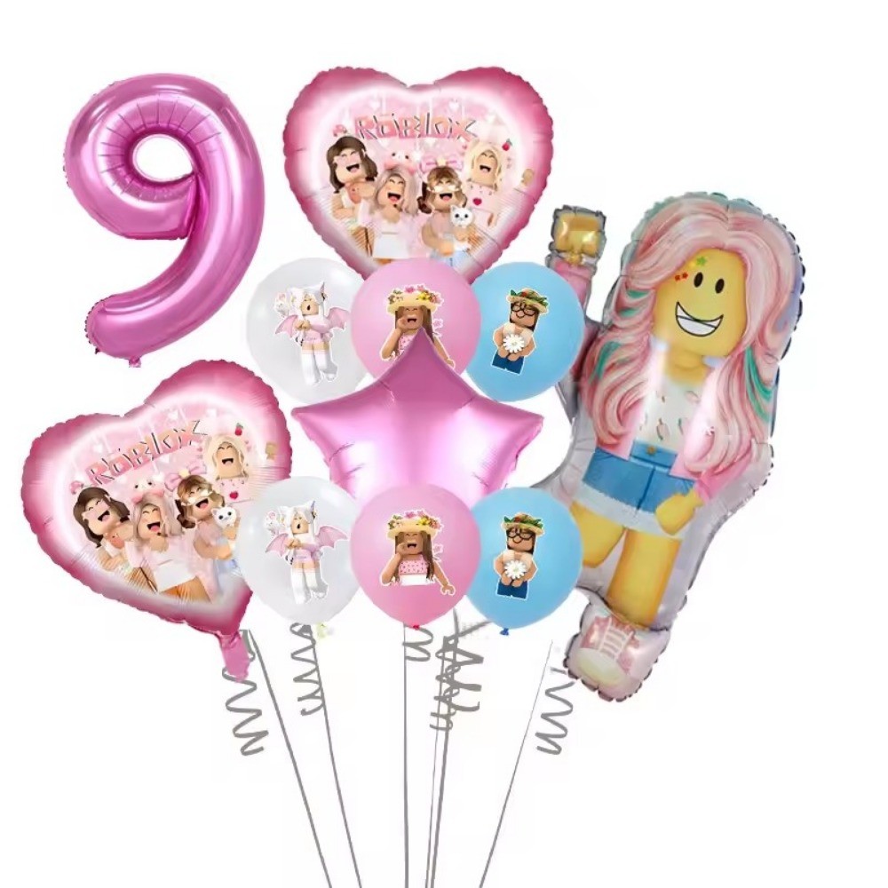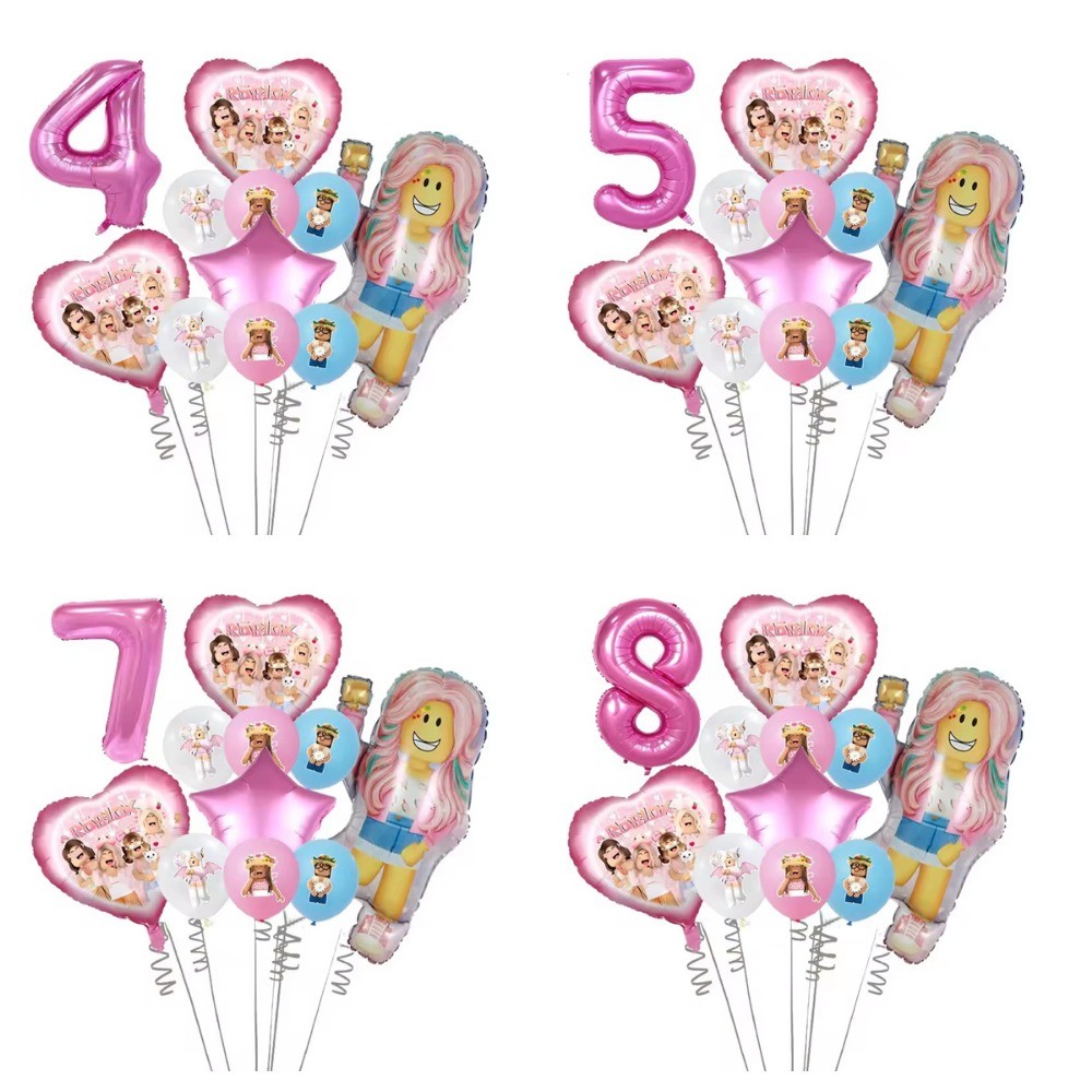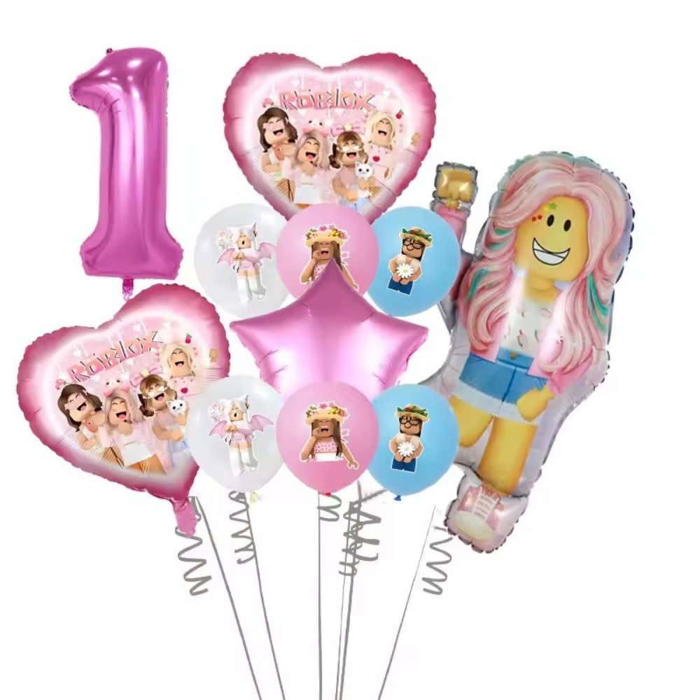 Pink Roblox Foil Balloons for Birthday Party Decors Girls Baby Shower Birthday Gift Latex Balloon Set