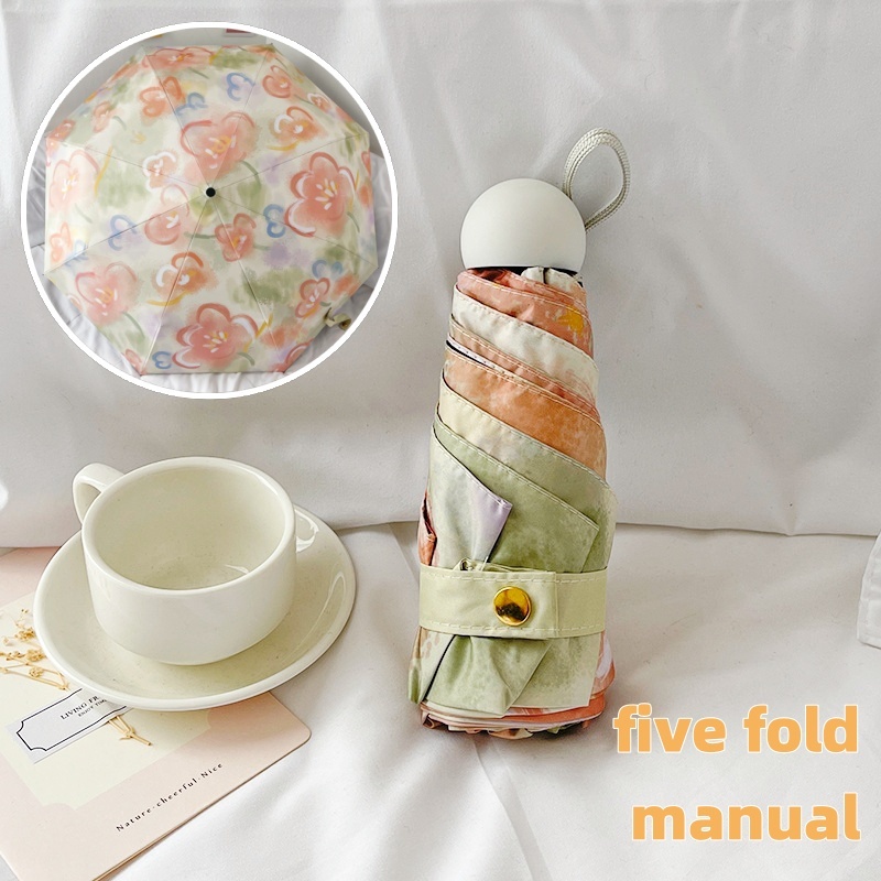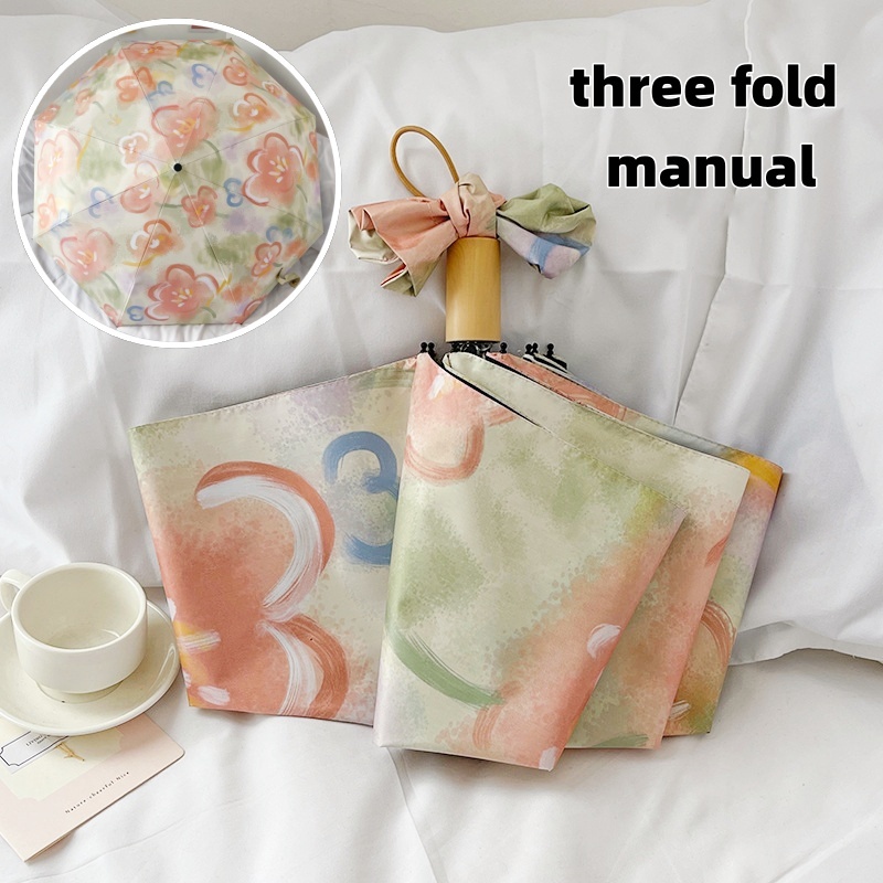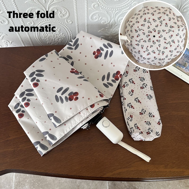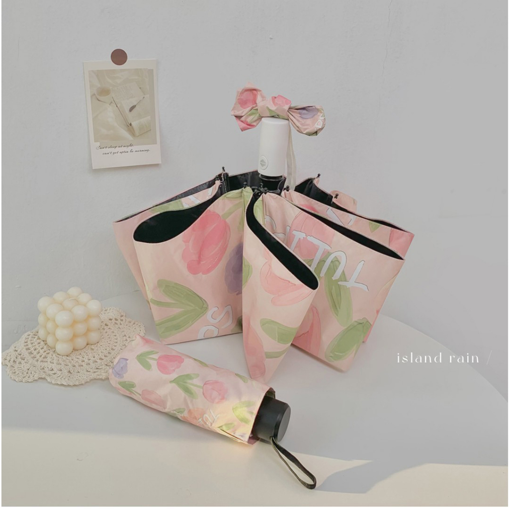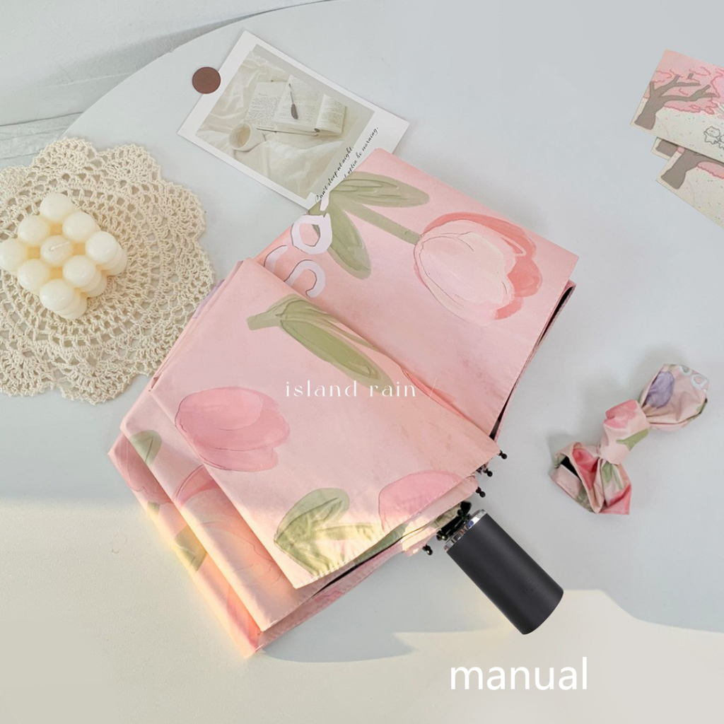 Pink tulip flower umbrella Portable folding automatic umbrella Outdoor UV prevention