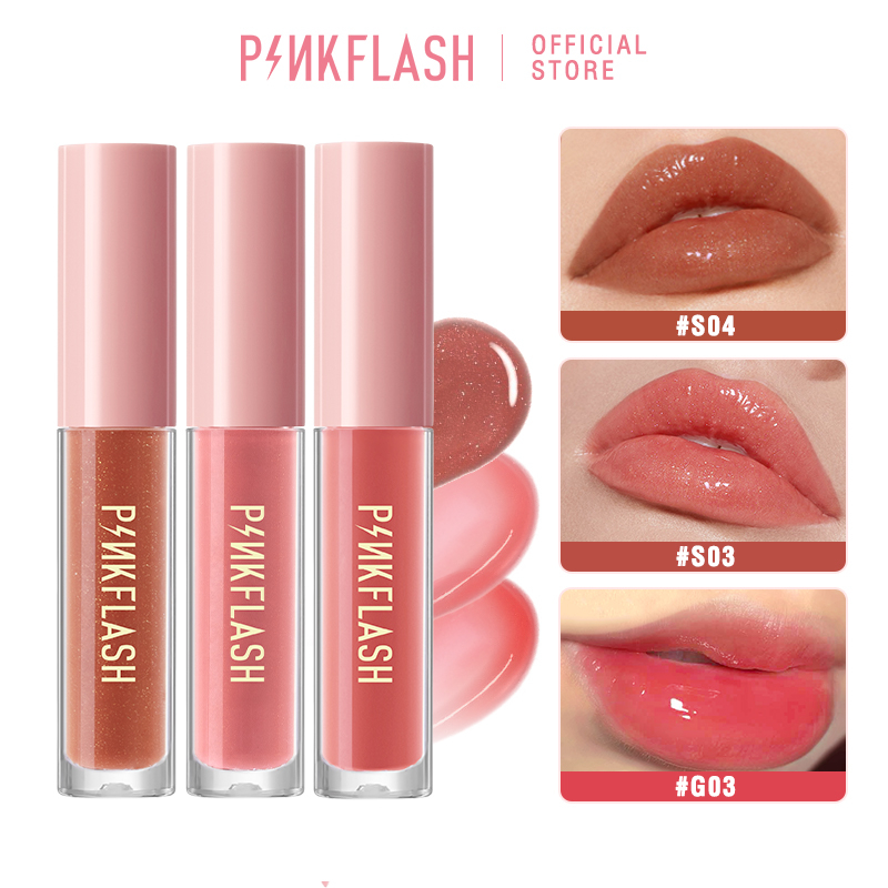 Pinkflash 3pcs Lip Gloss Set Moisturizing Shine Shimmer Lipstick Plumping Tint Care