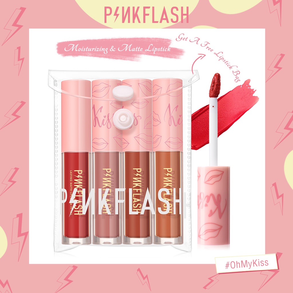 Pinkflash Free Gift lipstick bag 4PCS Lip Set OhMyKiss Matte Liquid Lipstick Soft VE Moisturising