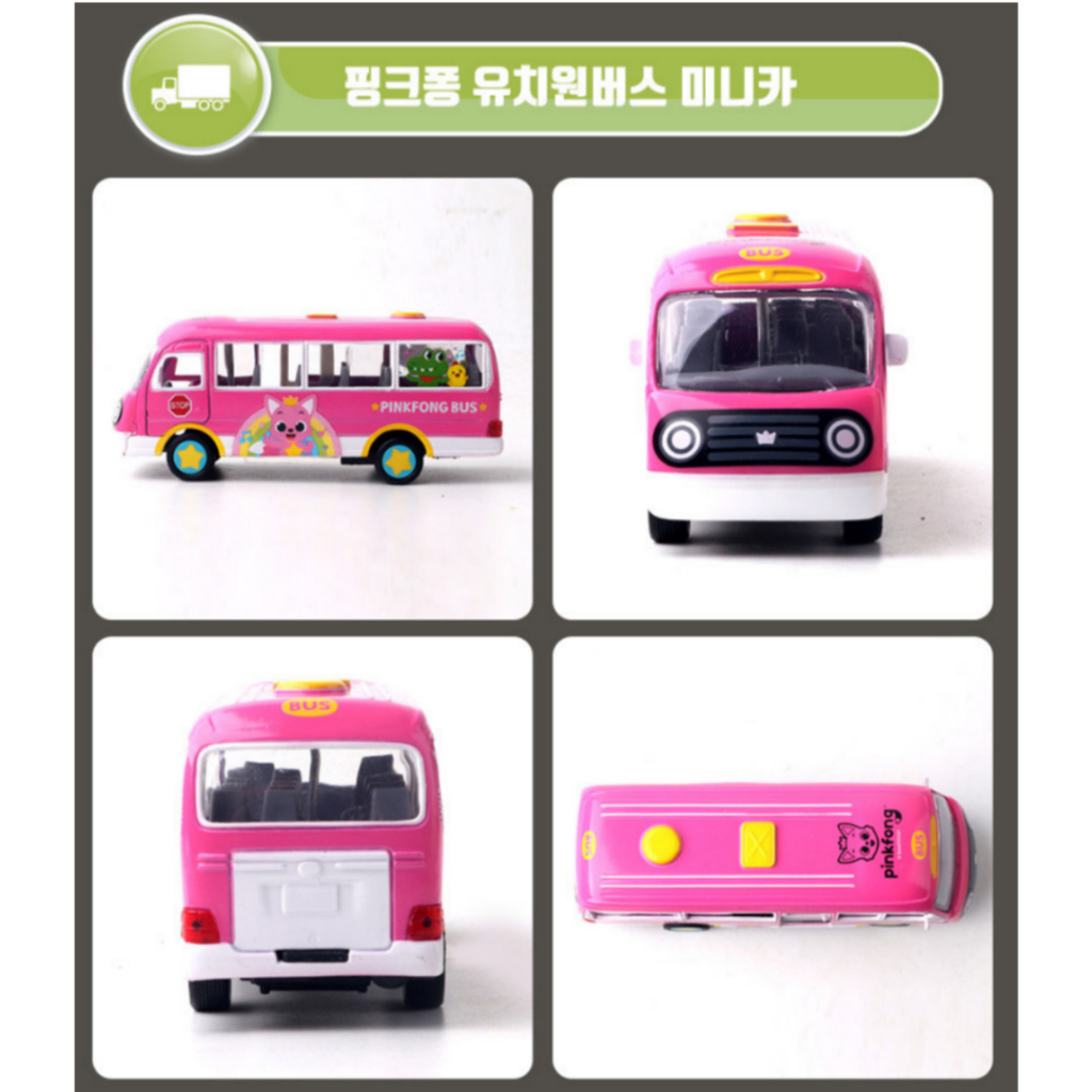 Pinkfong Kindergarten Bus Mini Car - A school bus model car that meets children's customer needs, induces creativity, and combines play learning with a popular character shark