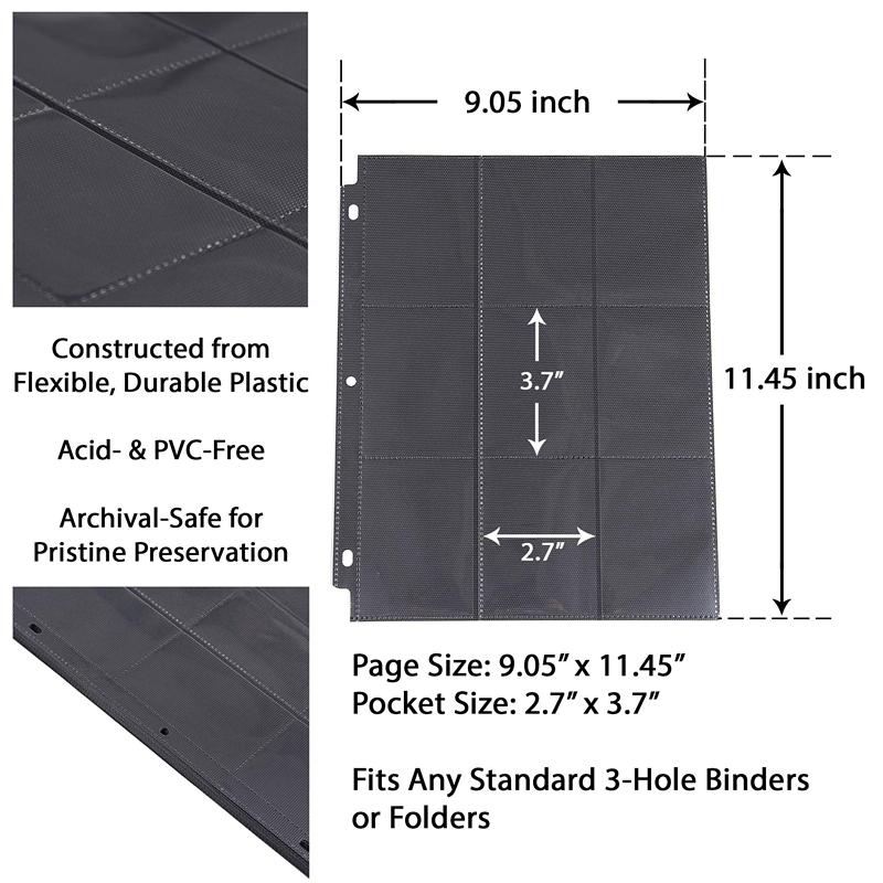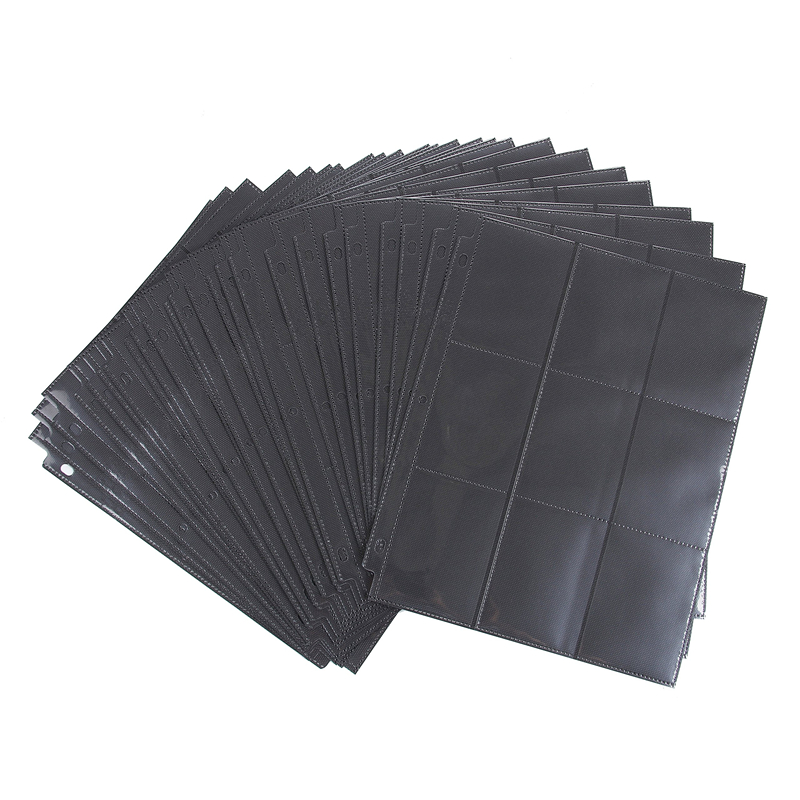 Side Load black Trading Card Sleeves Pages 9-Pocket Pages Storage Album Pages Fits 3 Ring Binder