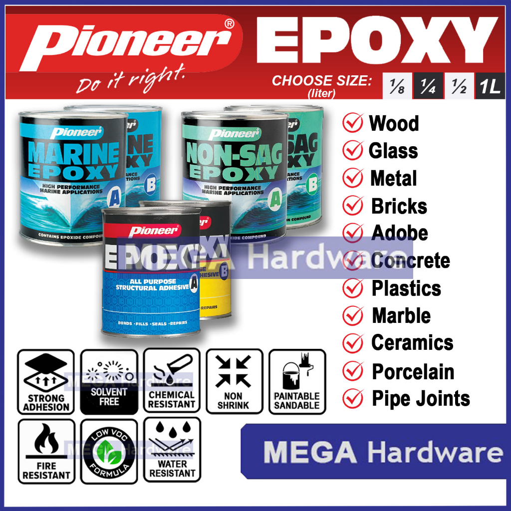 Pioneer All Purpose Epoxy Set (A & B) / Marine Epoxy Set / Non-Sag Epoxy Set 1/8 1/4 1/2L