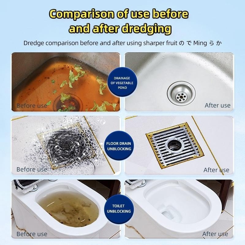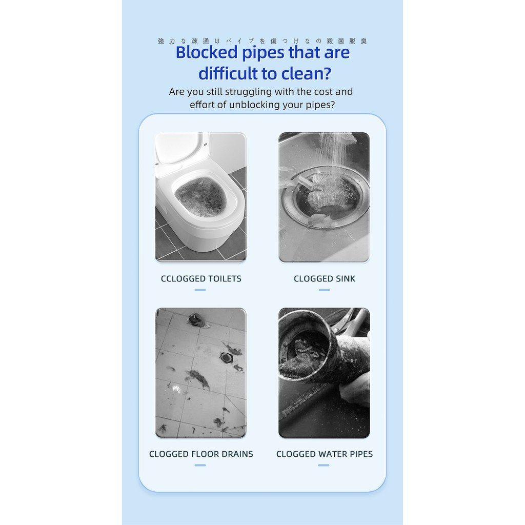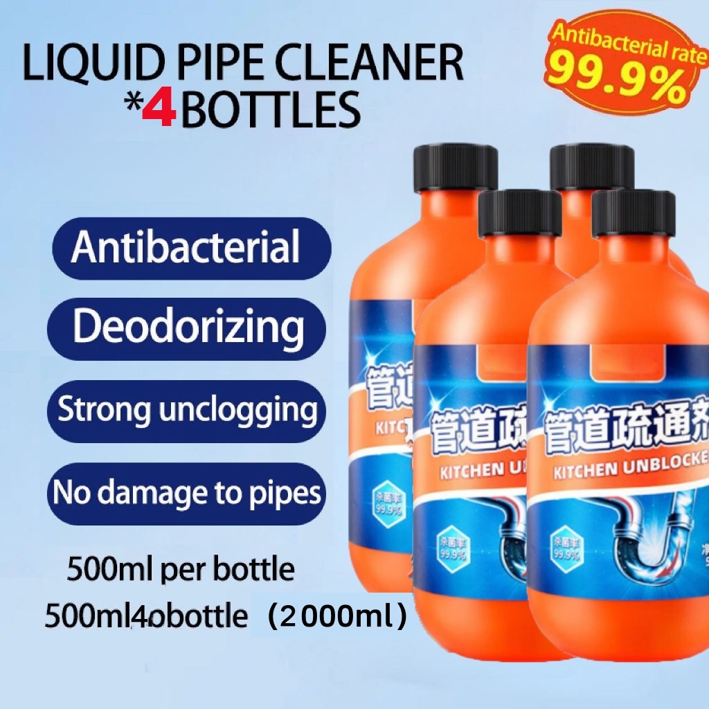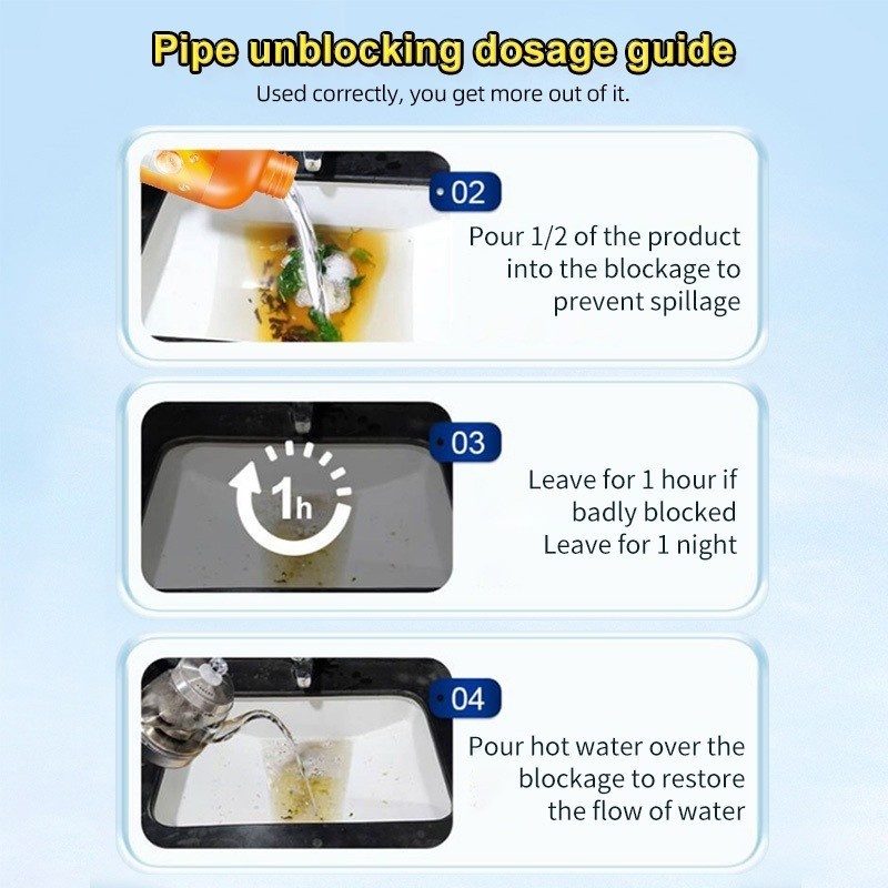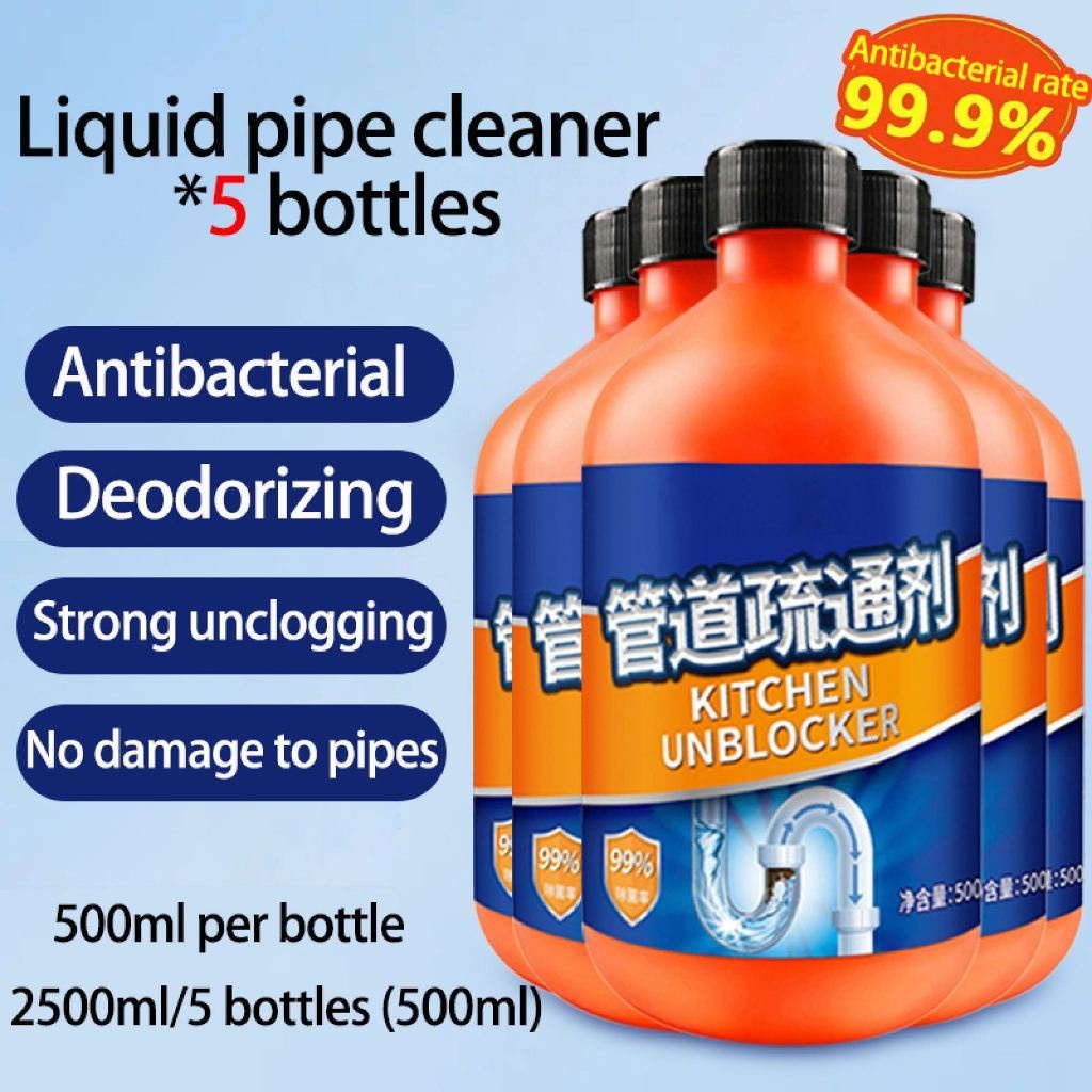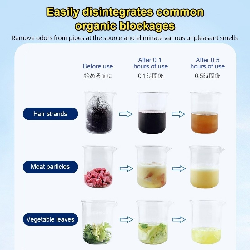 Pipe cleaning agent, blockage clearing fluid, clears pipe blockage, removes odors, removes insects