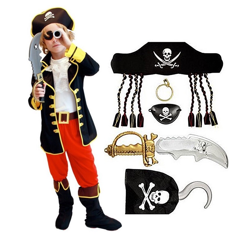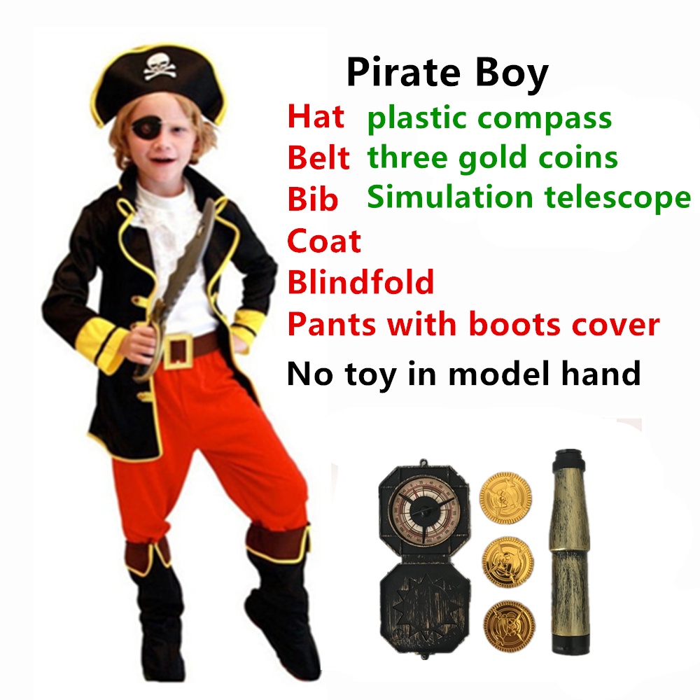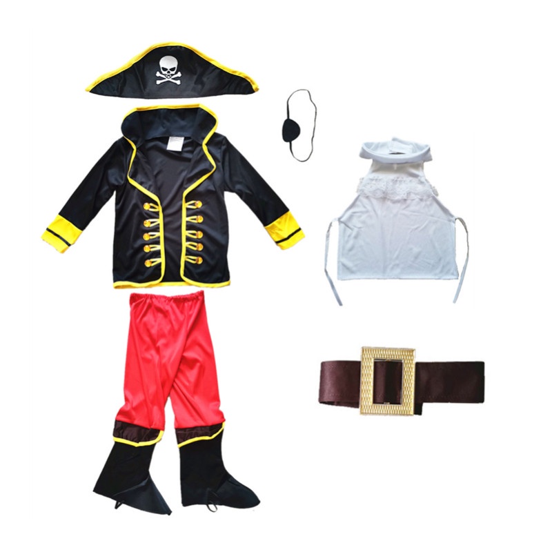Pirate King Costume Boy Carnival Birthday Halloween Cosplay Pirates of the Caribbean Captain Jack Pirate Clothing