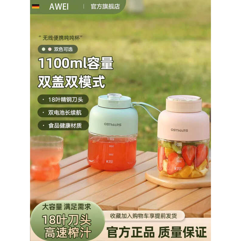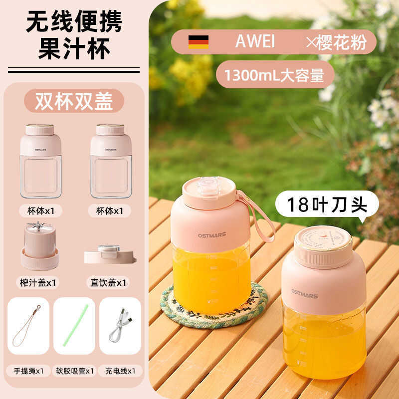 Portable Large Capacity Wireless Juicer Double Cover Full Body Waterproof Freshly Squeezed Juice Ice