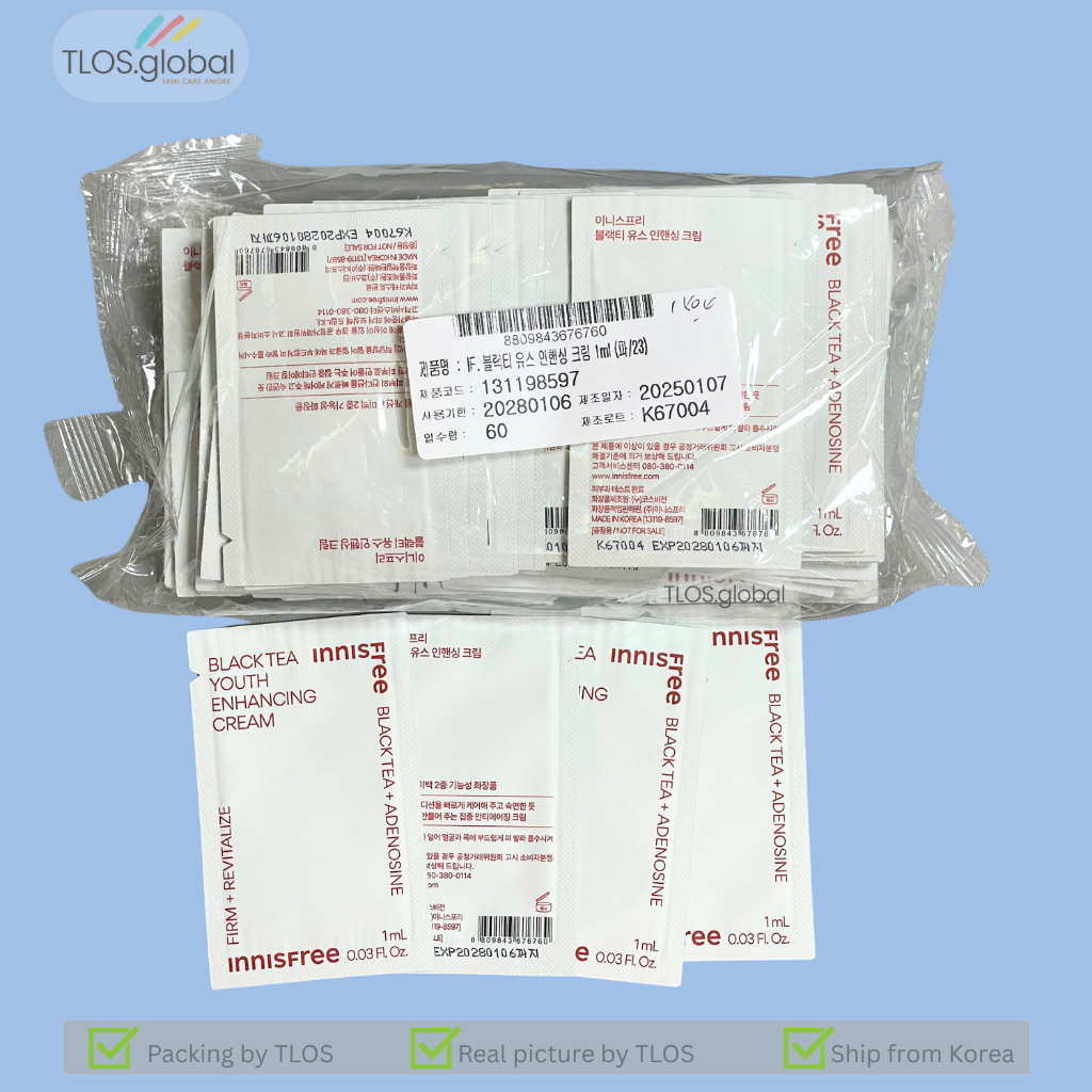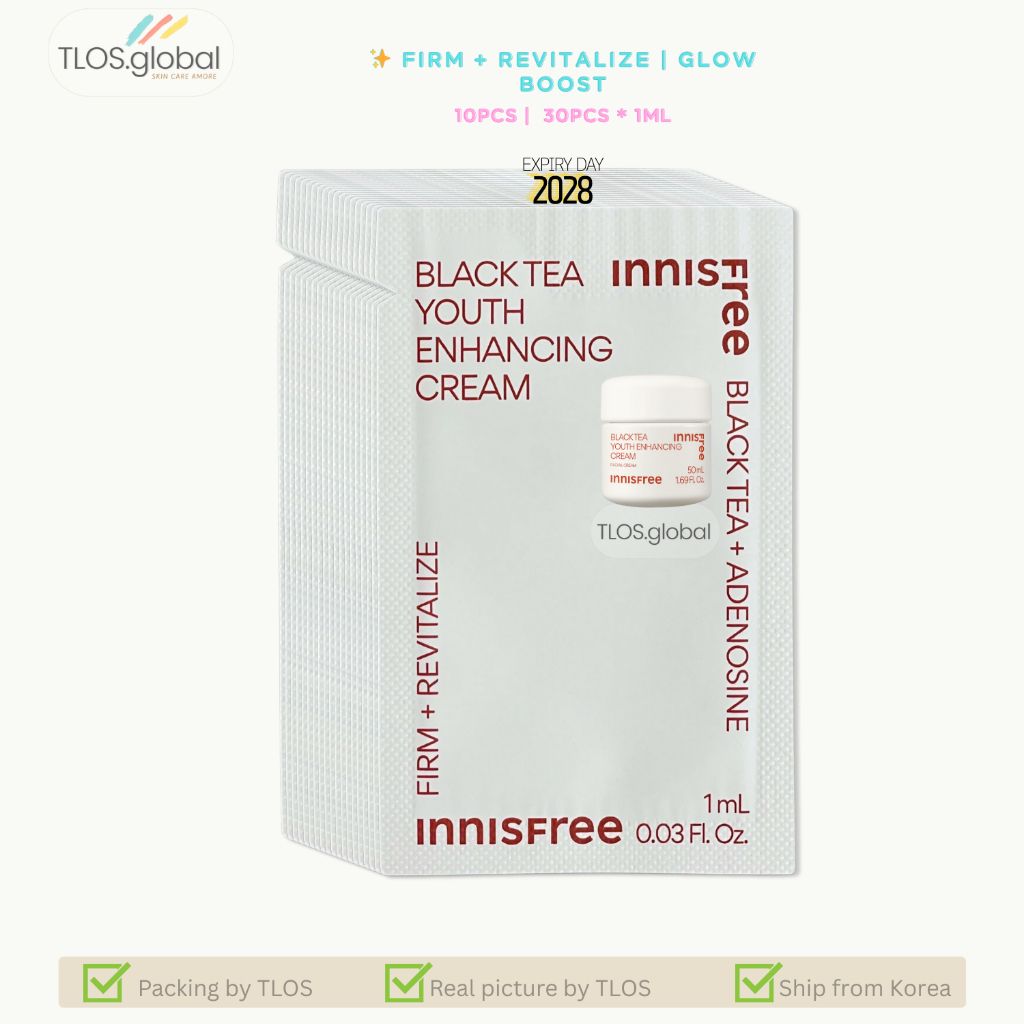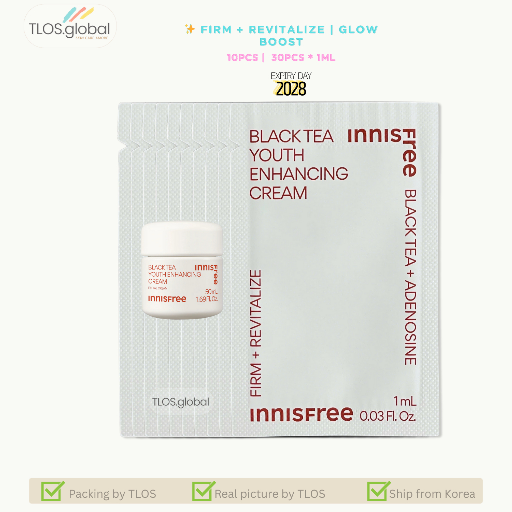 10pcs or 30pcs Innisfree Black Tea Youth Enhancing Cream 1ml Sachets Firm Revitalize Glow Boost