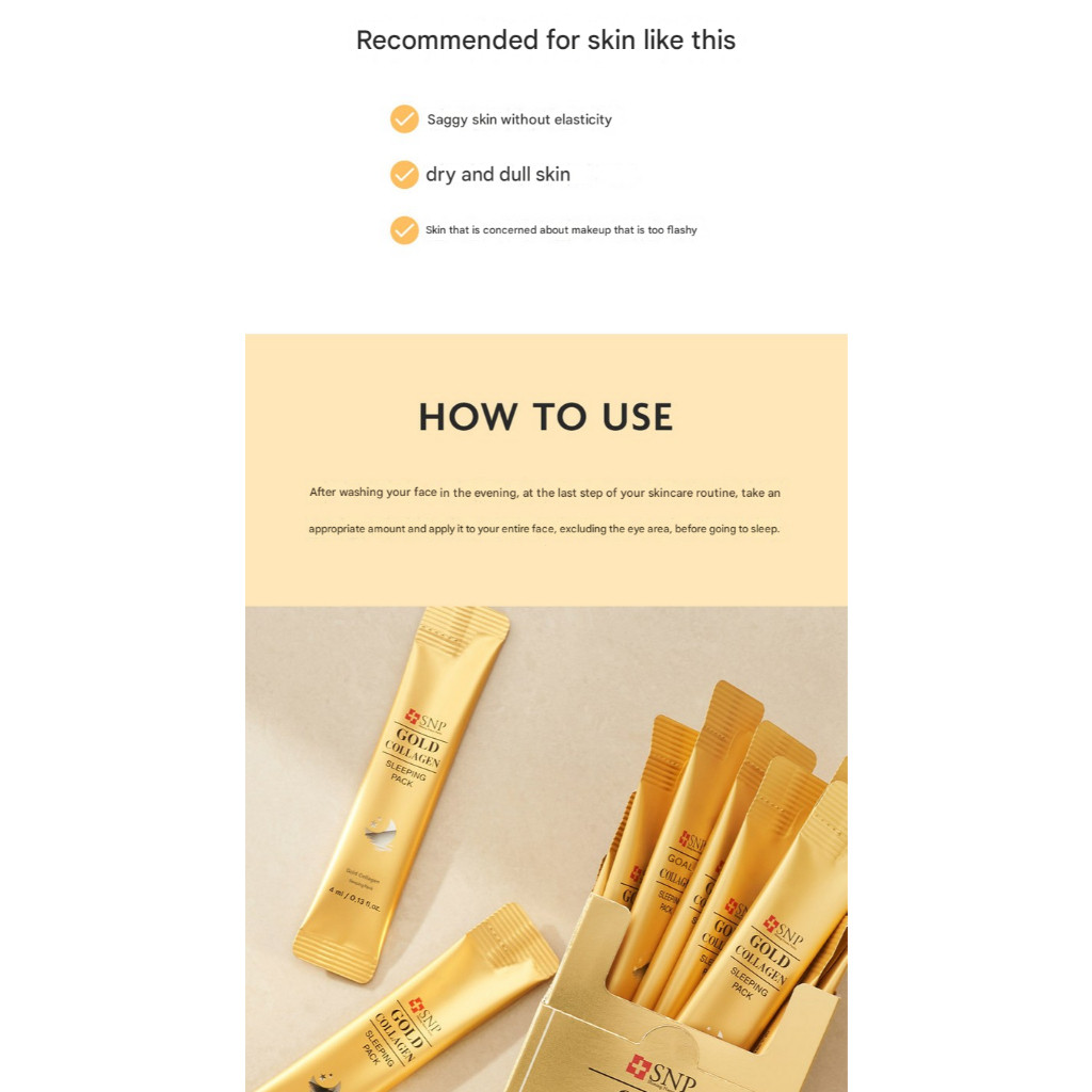 [SNP] Sleeping Pack Stick-Type 4ml x 20p, Gold Collagen, Diamond Bright, Bird’s Nest Water