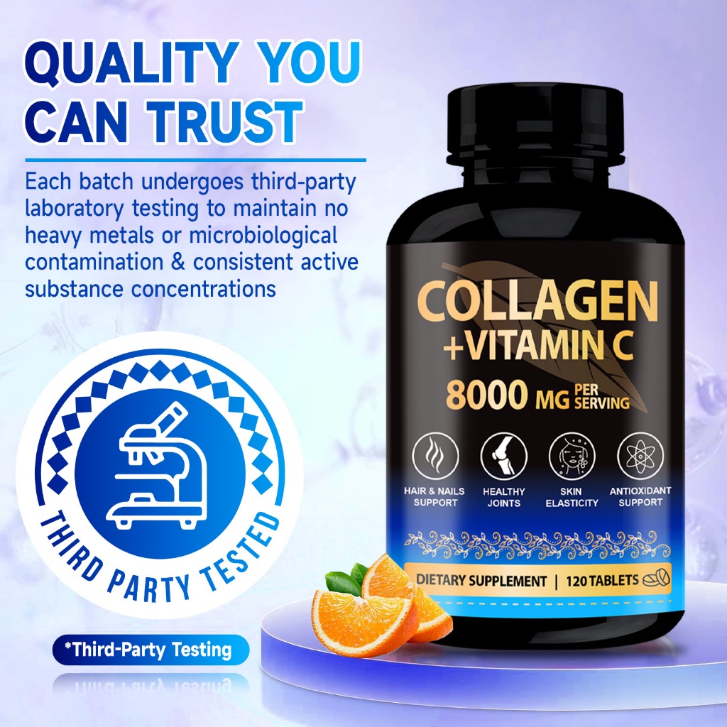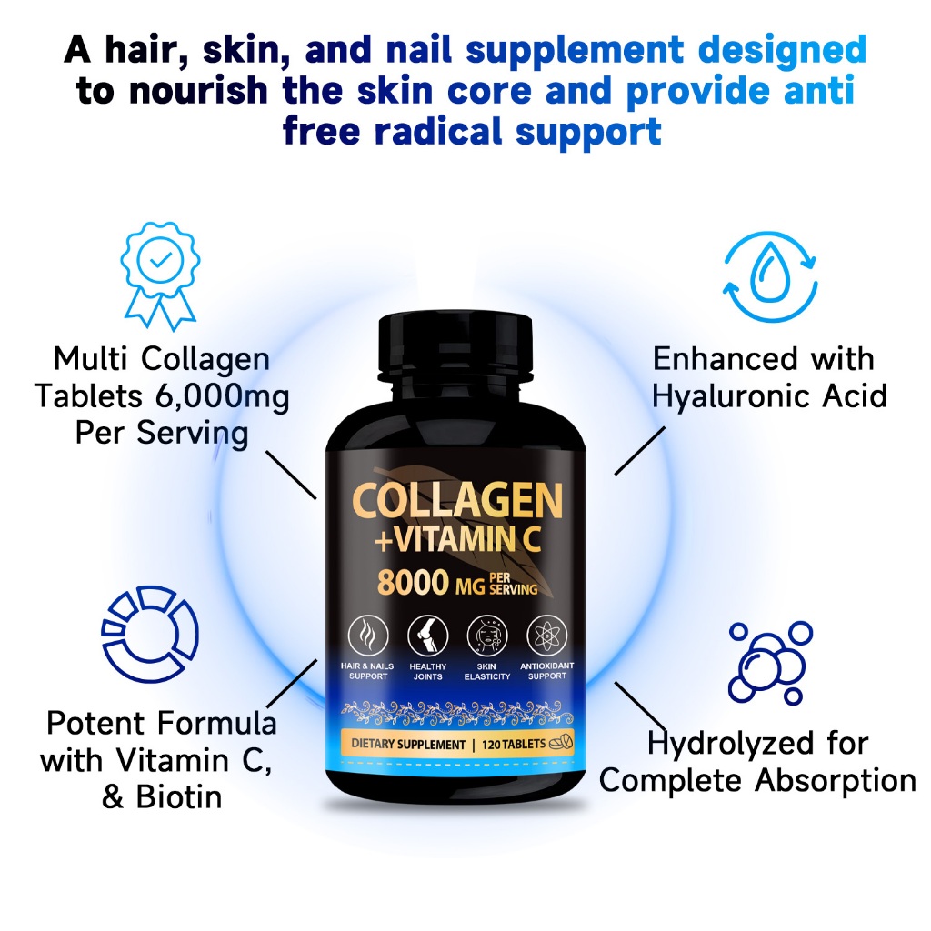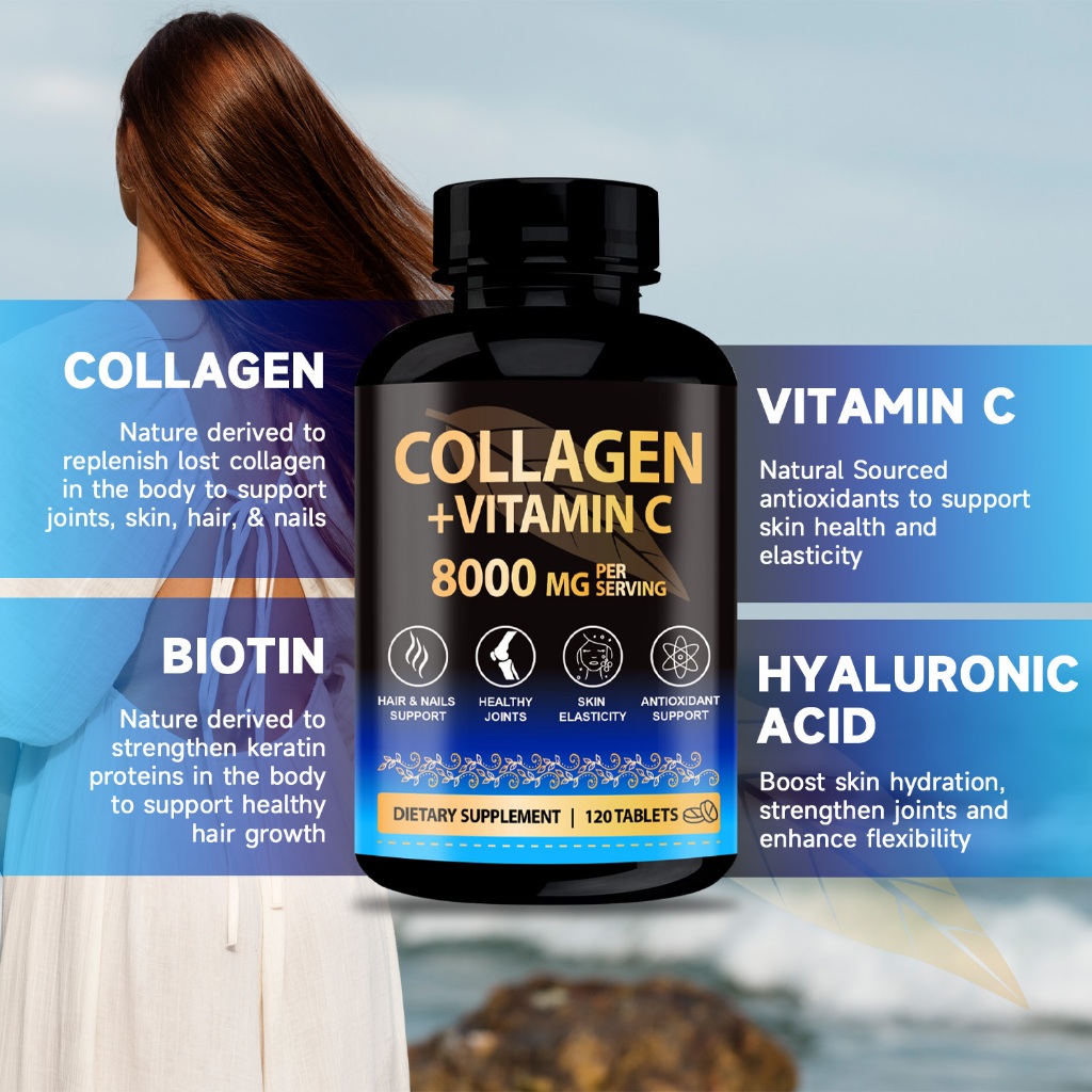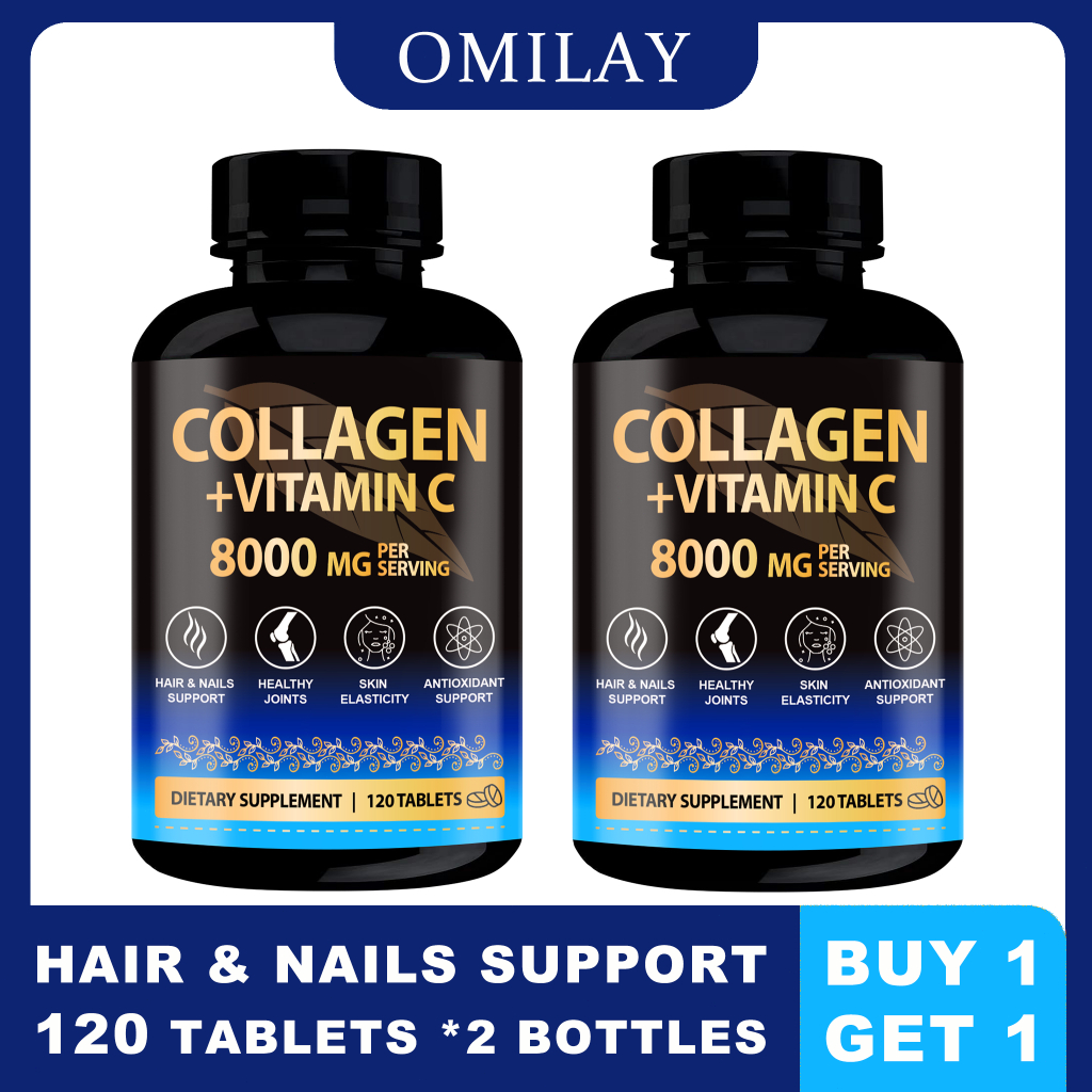 Omilay Collagen Vitamin C Supplement Hydrolyzed Collagen for Hair Nails Skin 120 Collagen Tablets