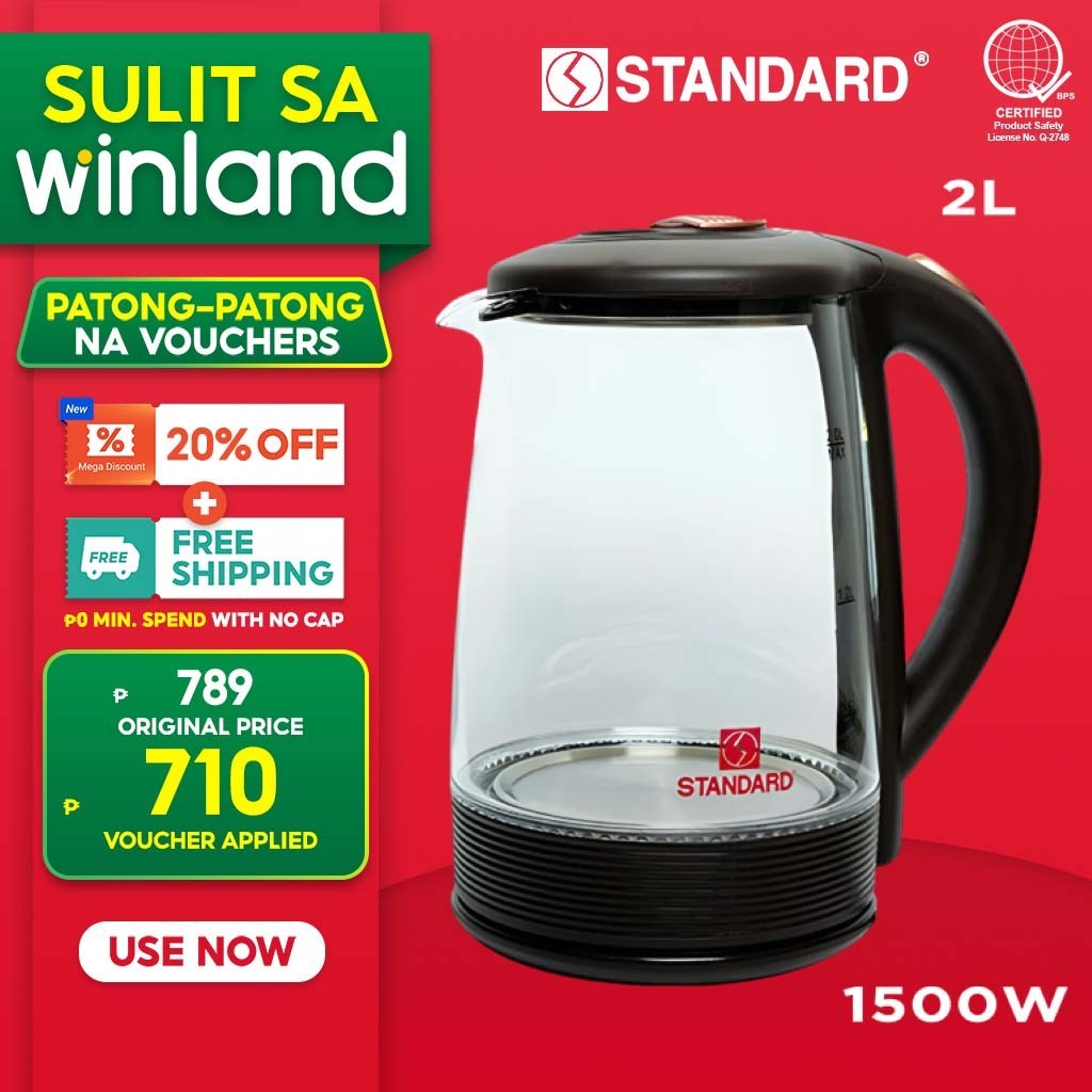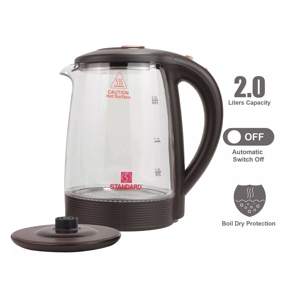 Standard Appliances by Winland 2.0 Liter Glass Electric Kettle w/ Led Light | Water Heater SEK-2.0LG