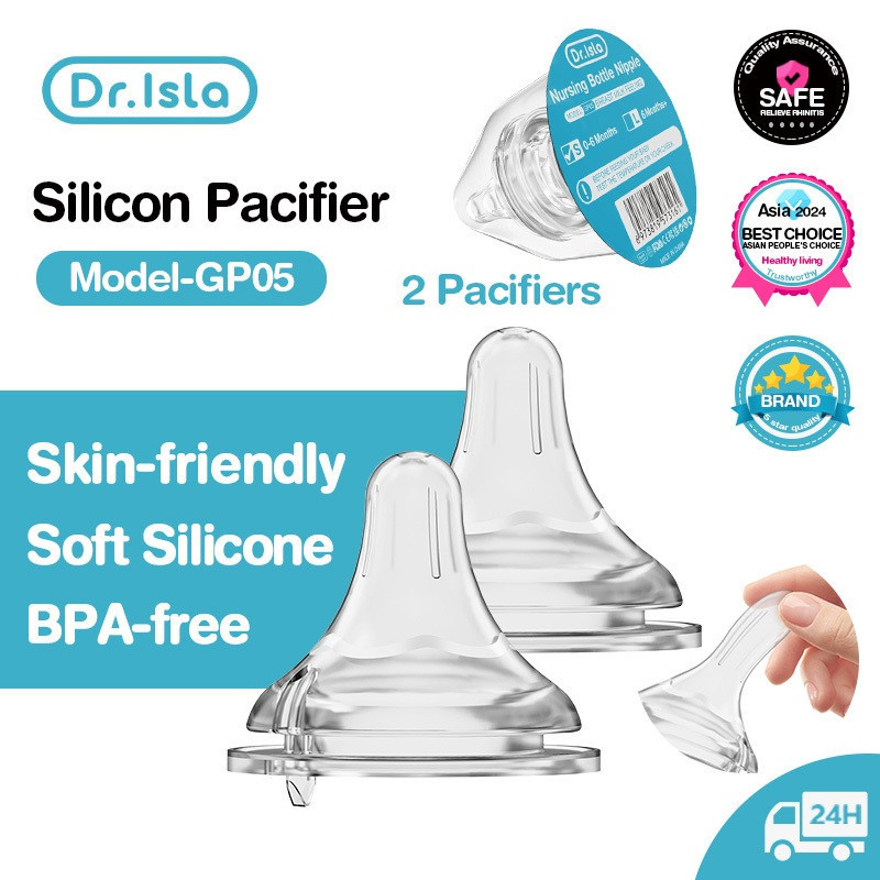 Dr.isla Silicone Nipple Wide Neck Anti-Colic No Suction Flow Available In Sizes S/L GP05 Dr Isla Pacifier Dr Isla Nipple Replacement