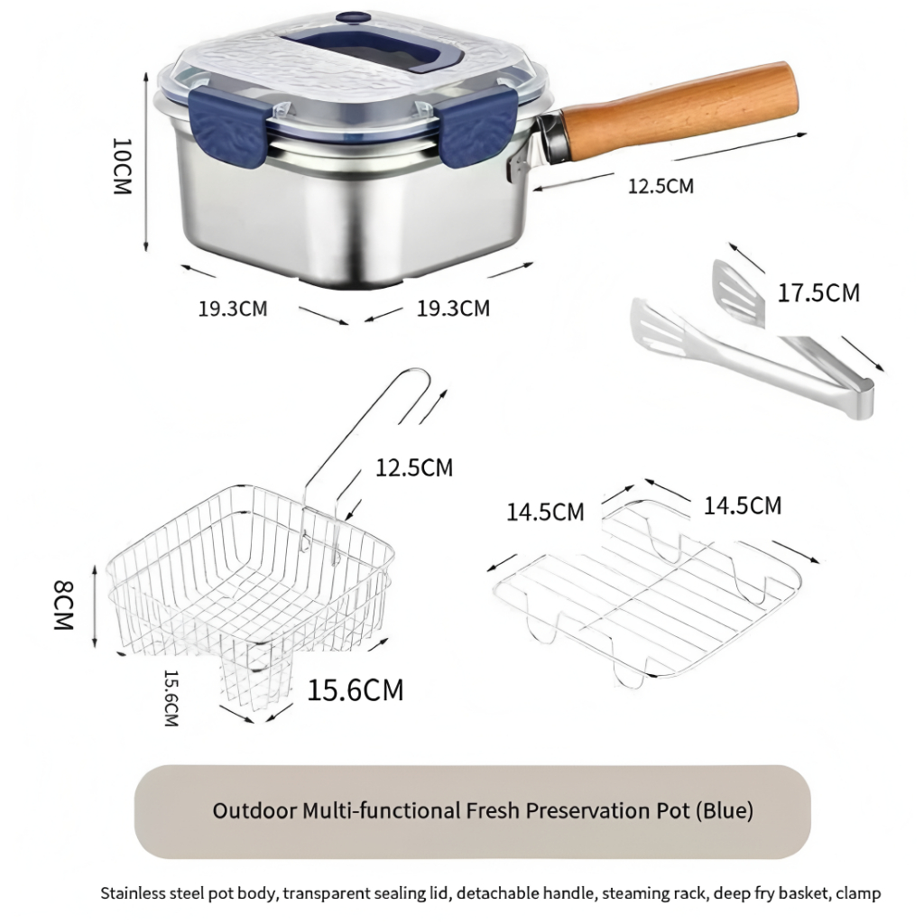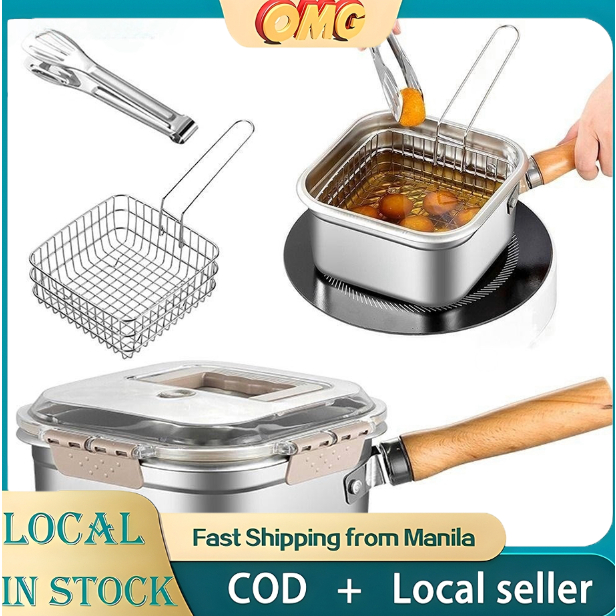 【Free shipping】Deep Fryer Pot, Multipurpose Stainless Steel with Clip Preservation Box Fryer Basket