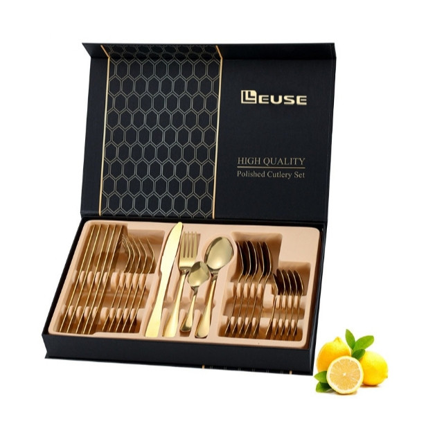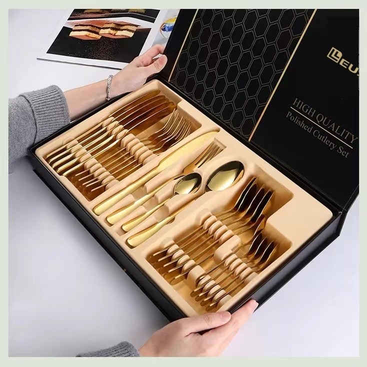 Golden 24-Piece Set Fashionable Kitchen Stainless Steel Spoon and Fork Cutlery Set Gold 24Pcs