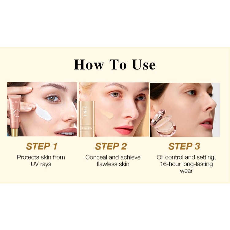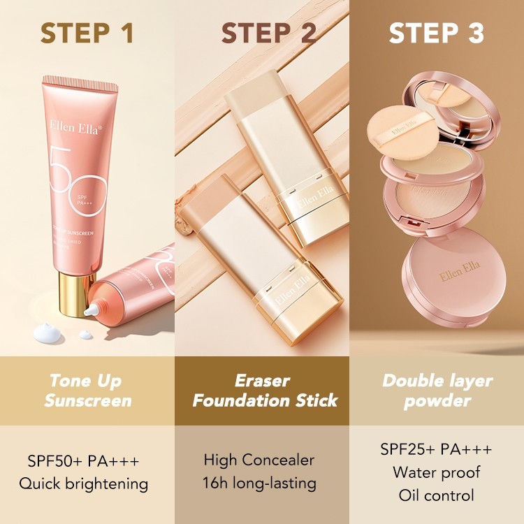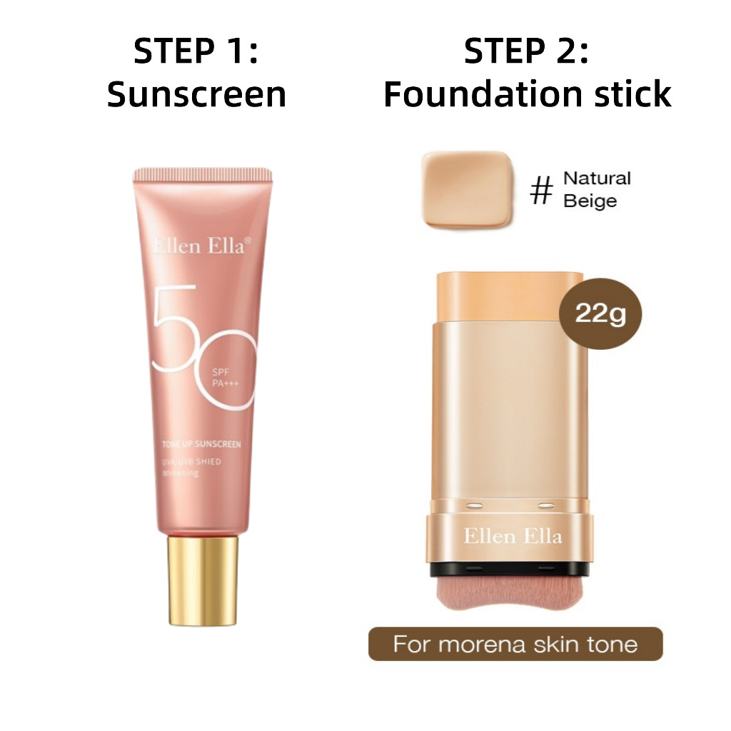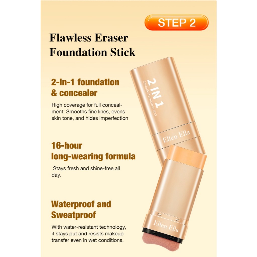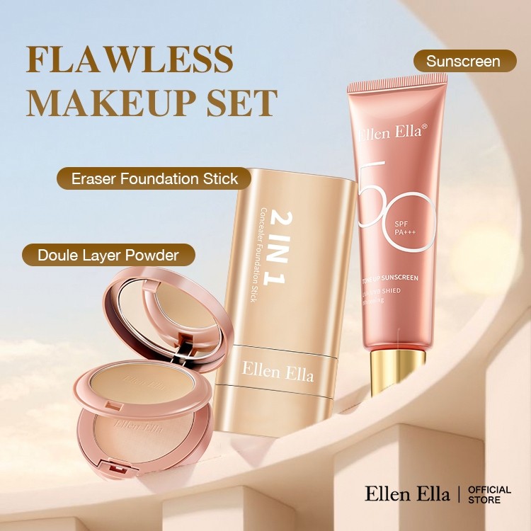 Ellen Ella Flawless Makeup Set Concealer Foundation Stick 22g Tinted Sunscreen SPF50+ Compact Powde