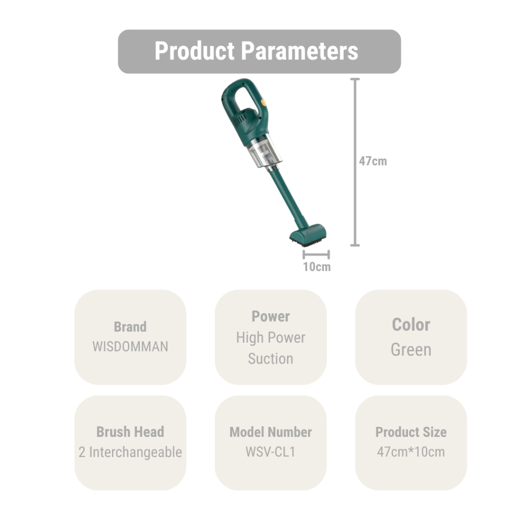WISDOMMAN Vacuum Cleaner Powerful Suction Portable Dual Use for Home Car with International Warranty