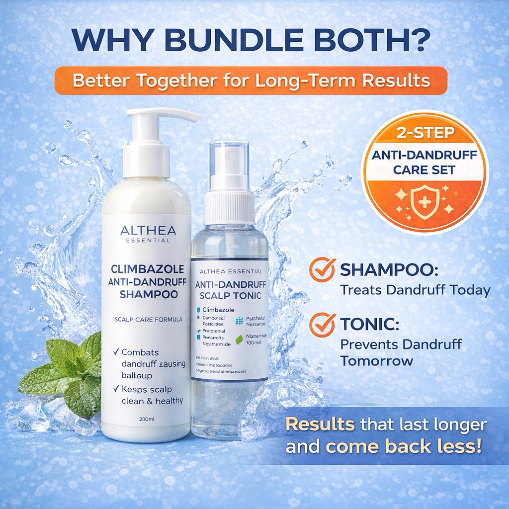 Althea Essential Anti-Dandruff Scalp Care Set | Climbazole Shampoo + Scalp Tonic | For Itchy, Oily