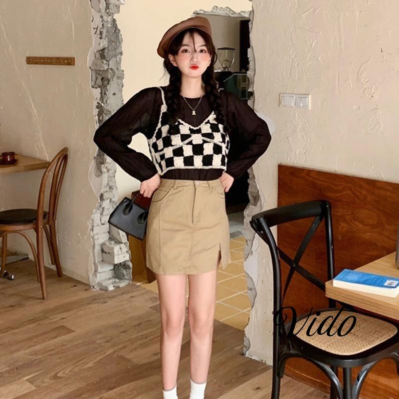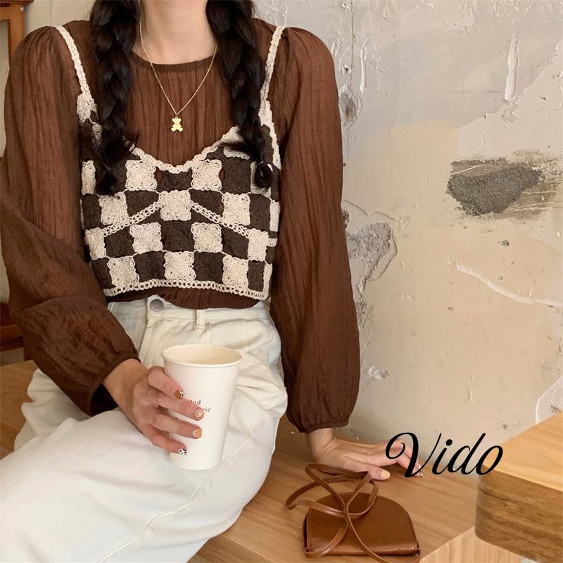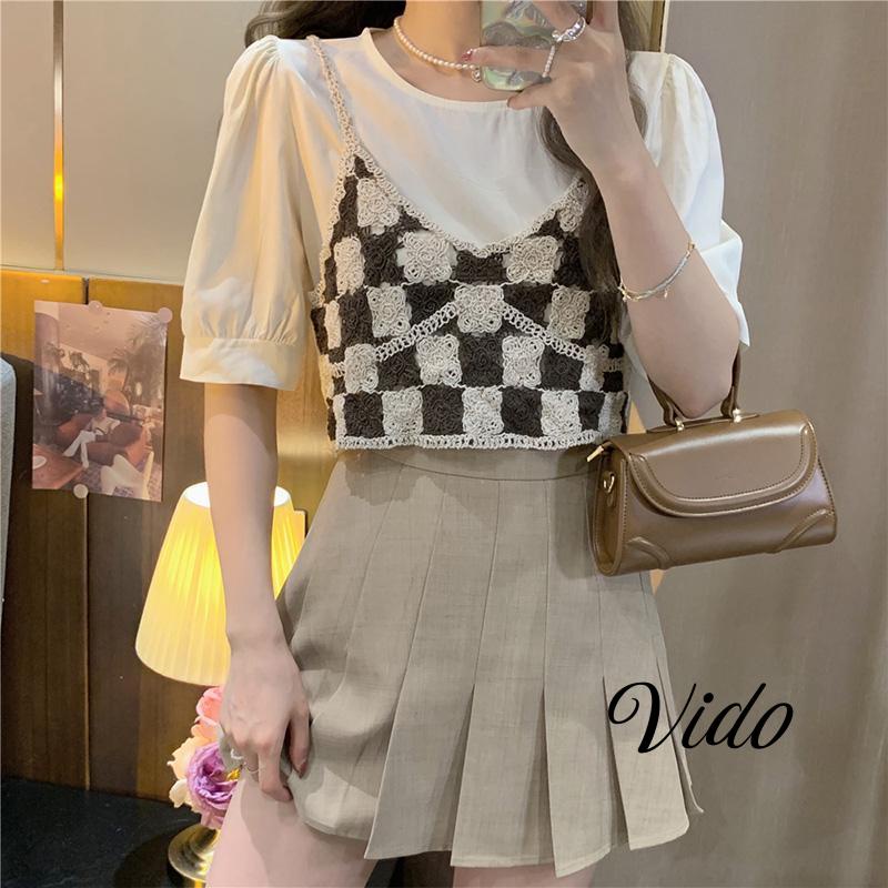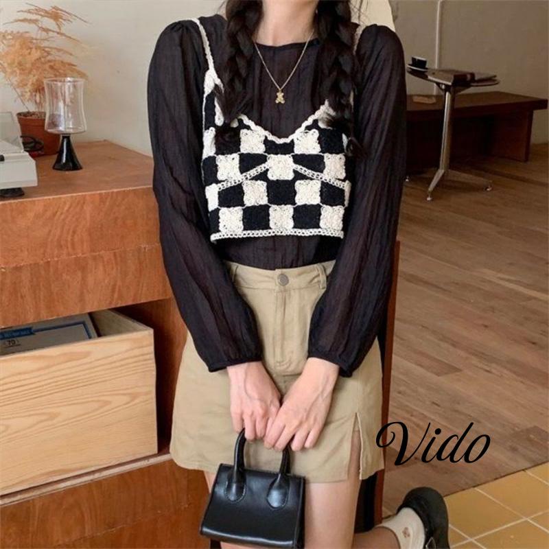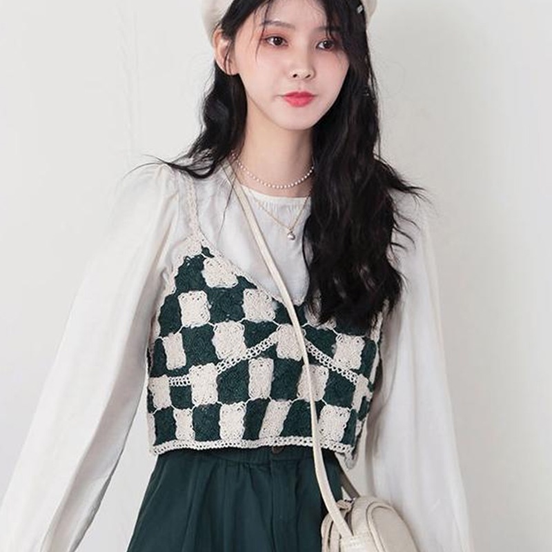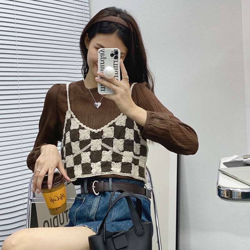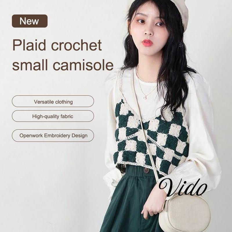Plaid Crochet Small Camisole Women's Loose Design Sense Outer Wear Short TopVD