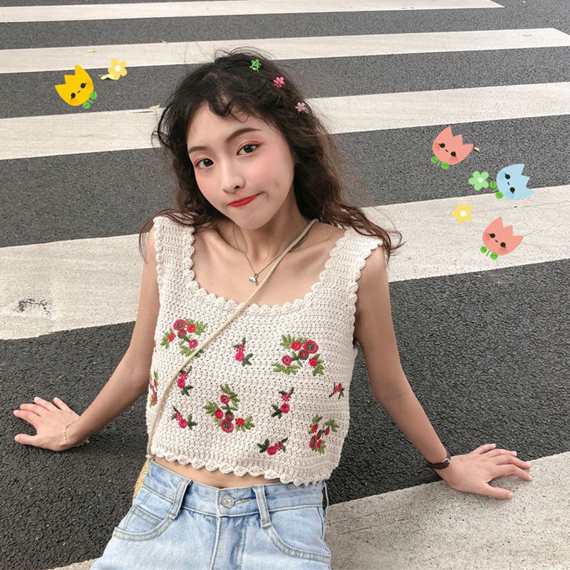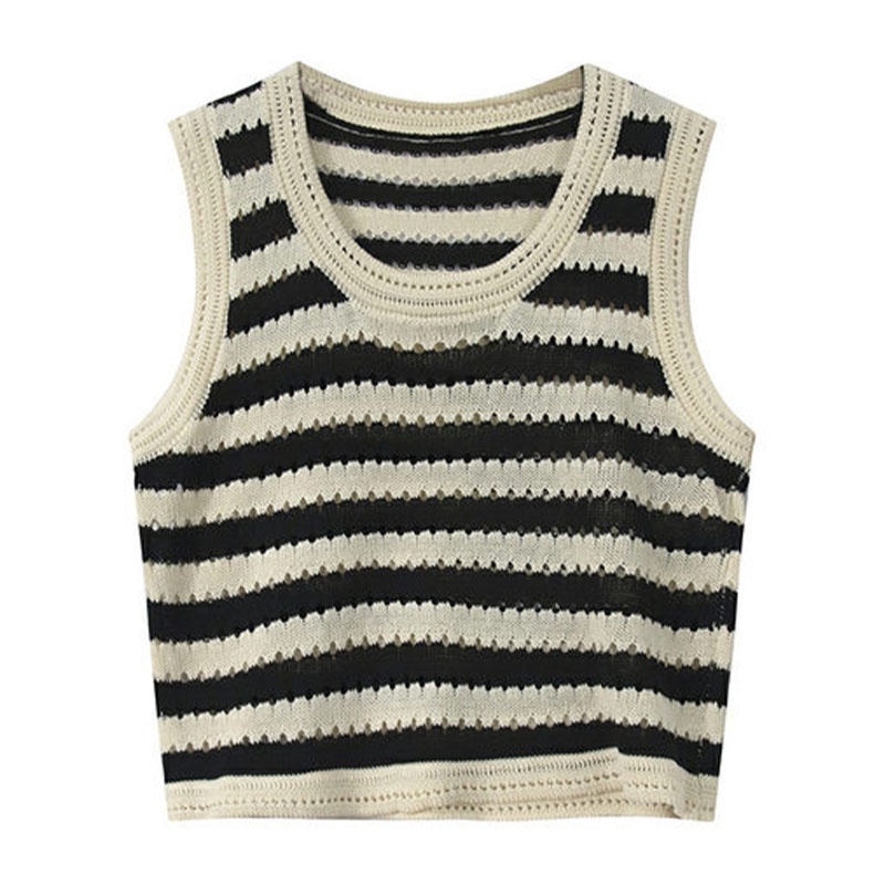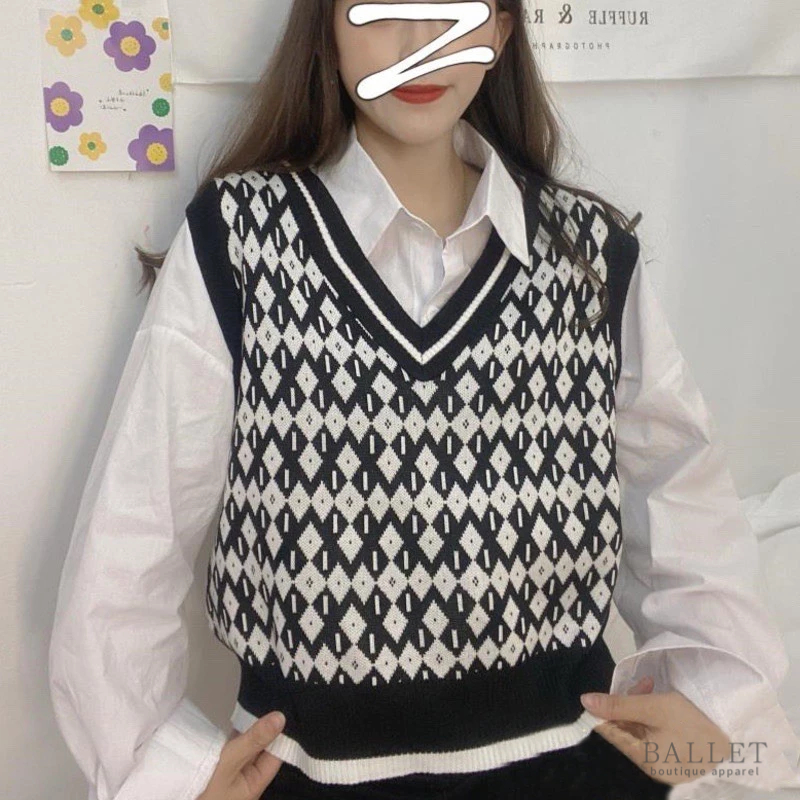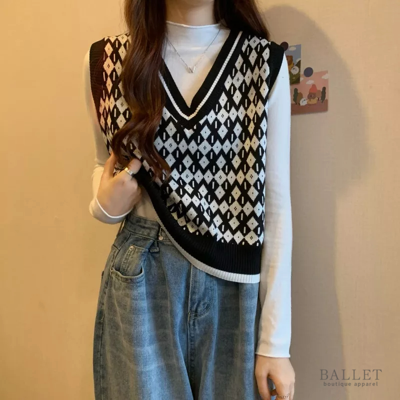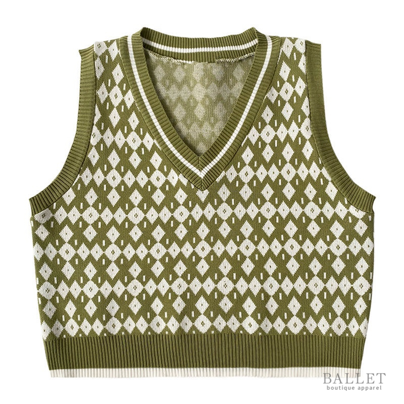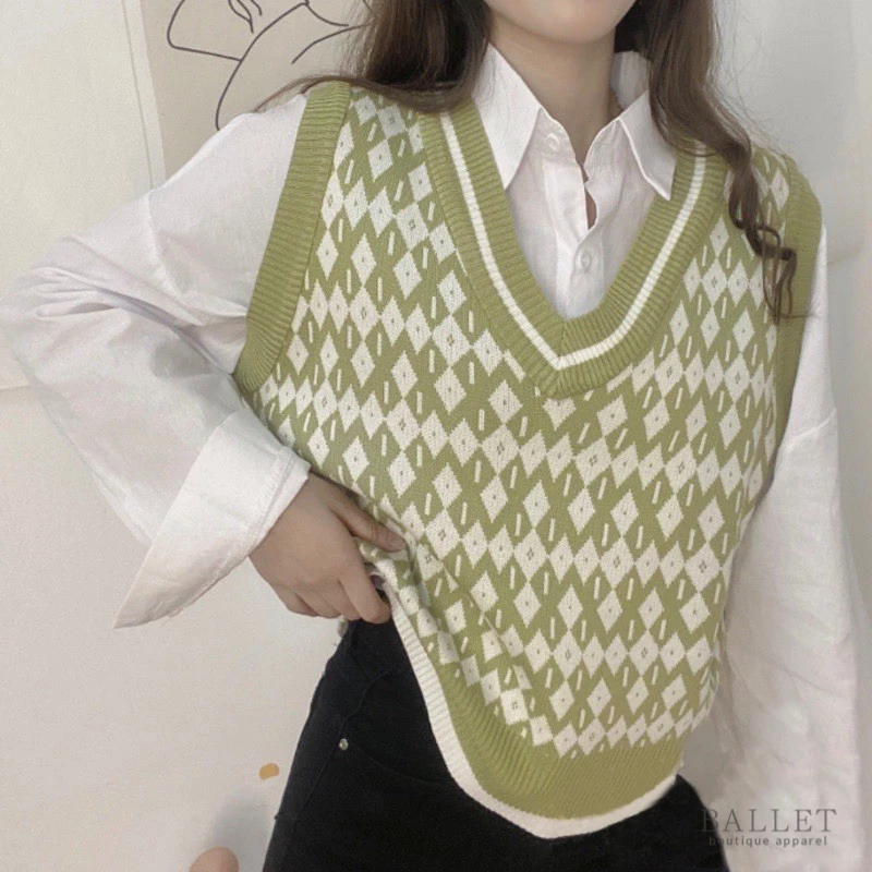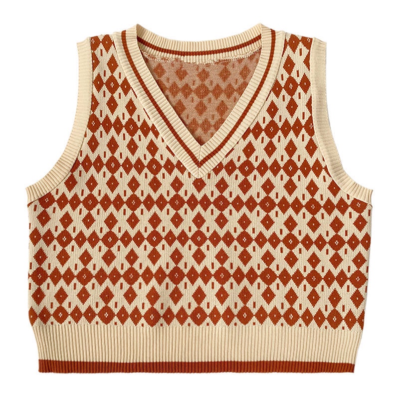 Plaid Knitted sweater Vest Korean Women's V-Neck Sleeveless Oversized Camisole Tops BB