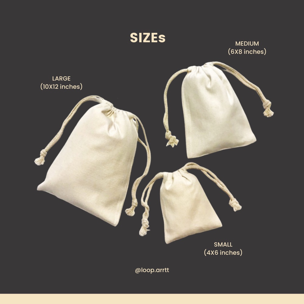 (20PCS) Plain Canvas [10x12 inch, 6x8 inch, 4x6 inch] Drawstring Pouch 10x12 6x8 4x6 | Loop Art